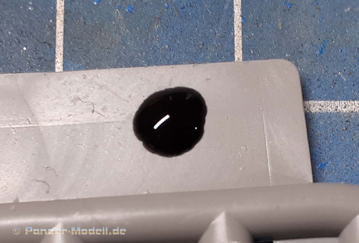 Auf deutsch heißt das, dass wir hier einen langsam trocknenden Sekundenkleber haben, der schwarz gefärbt ist.