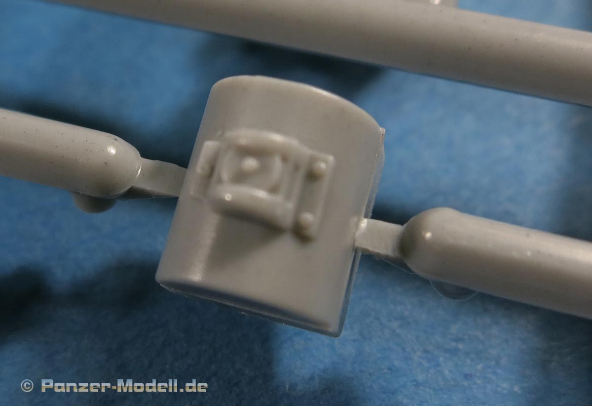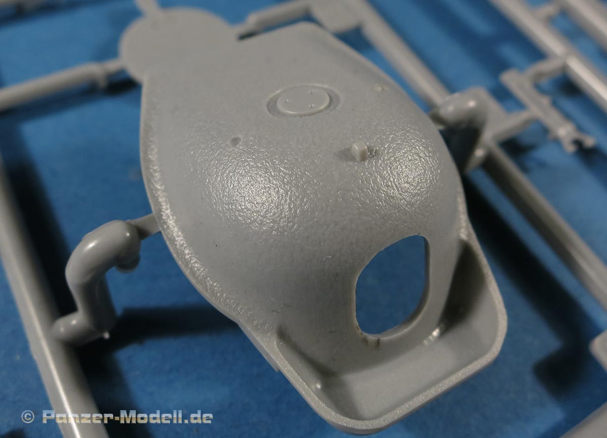 Die Hauptbewaffnung die 7,5cm Kanone (die vermutlich die L/70 darstellt) besteht aus einem einteiligen Rohr in Plastik, das beweglich in die Kanonenaufnahme eingebaut werden kann. Diese widerum ist, wie auch die Kanonenblende mit einer recht schönen, rauen Gussstruktur versehen.