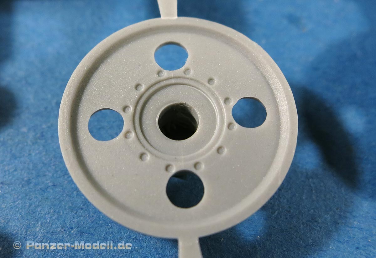 Das Laufwerk besteht aus den 8 Laufrollen, die schön detailliert mit den Radbolzen sowohl auf der Innen- als auch Aussenseite dargestellt sind.
