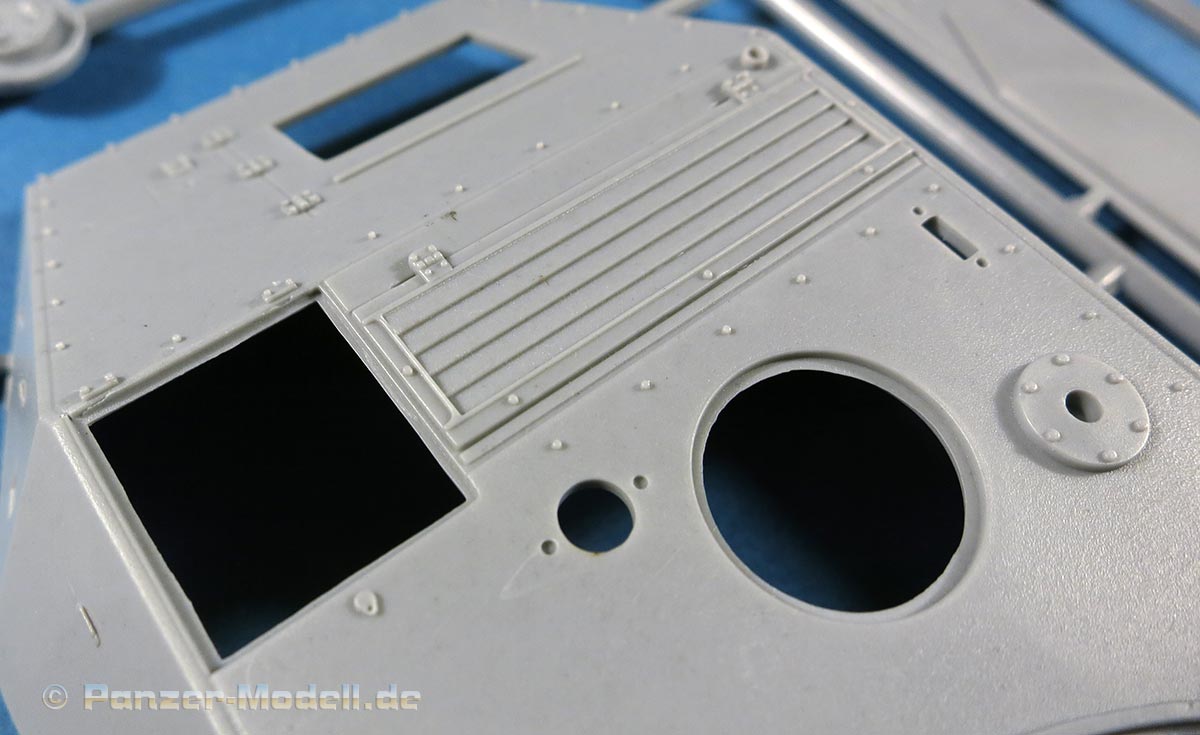 Als erfreulicher Gimmick liegen die typischen Seitenschürzen mit Halterungen als PE Teile bei, die einen ausgezeichneten Eindruck machen