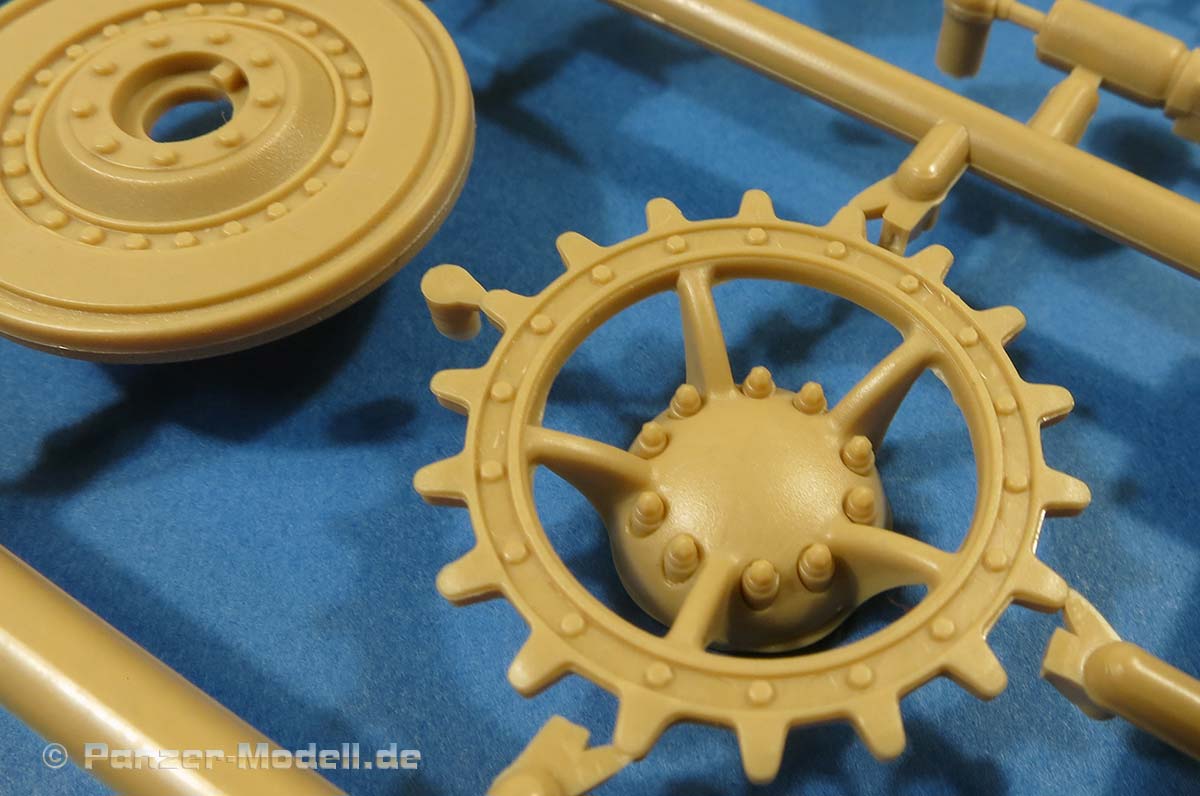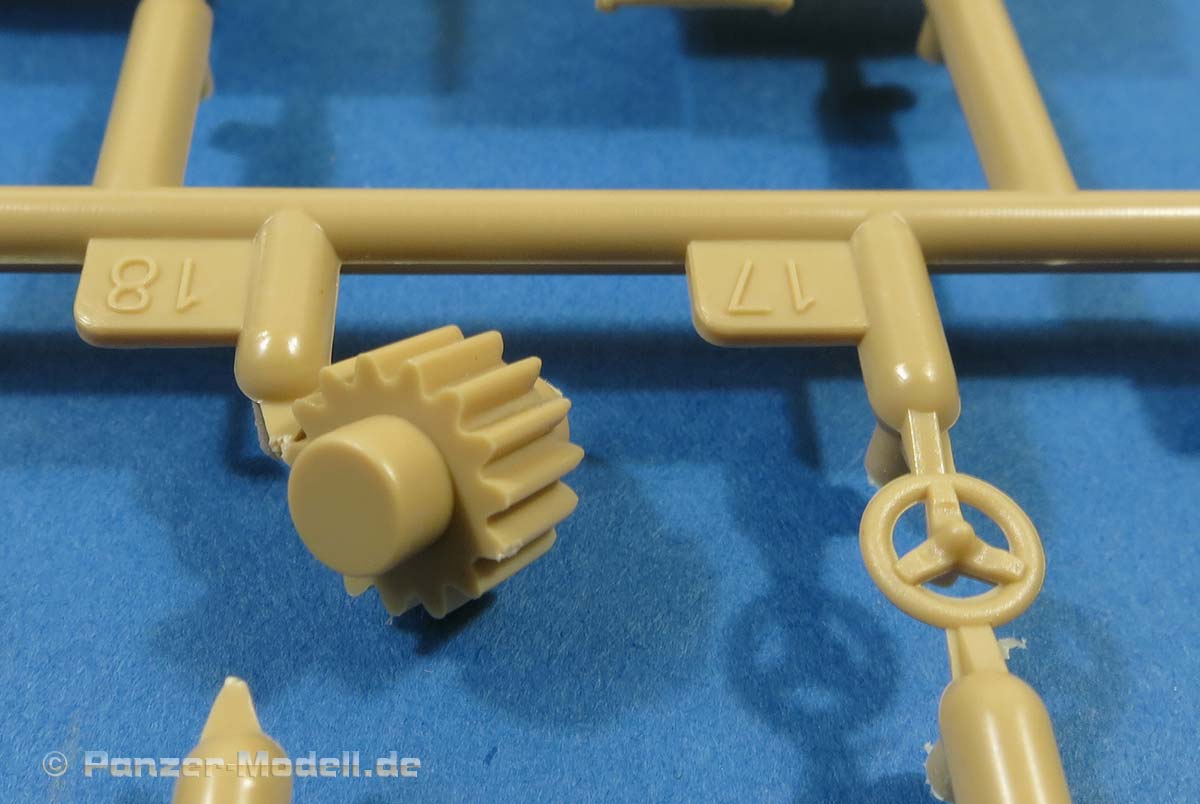 Weitere Anbauteile wie Seiten- und Höhenrichtgetriebe, sowie sie Bedienersitze und Räder sind mit relativ wenigen Teilen baubar und weisen schöne, feine Details auf.