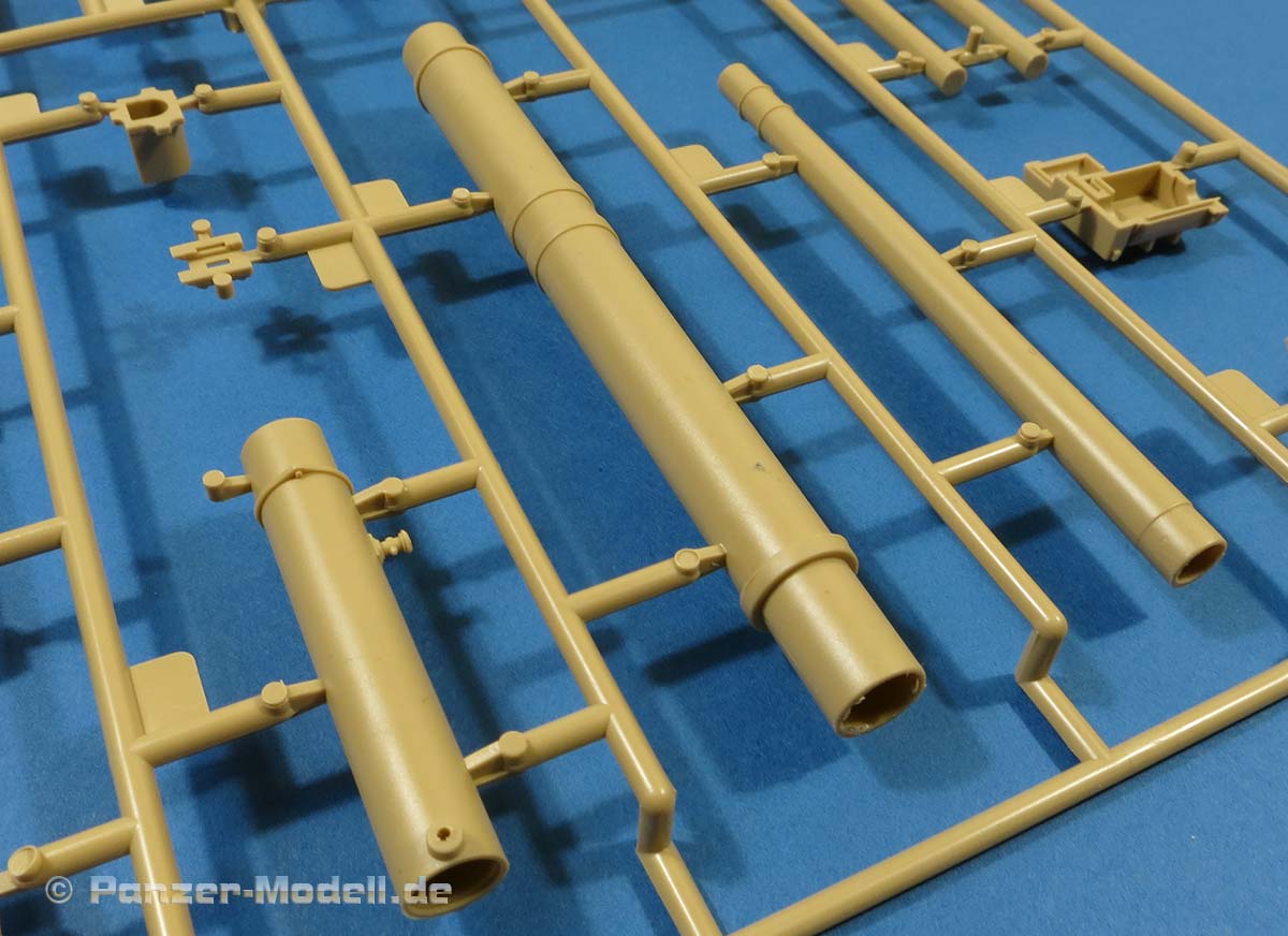 Kommen wir zum Hauptakteur - die Kanone. Diese lässt sich in drei verschiedenen Ausführungen bauen. Einmal mit regulärem 128mm Flak Rohr, einmal mit verlängertem 128mm Flakrohr und als Highlight das konische 128mm/96mm Rohr.
