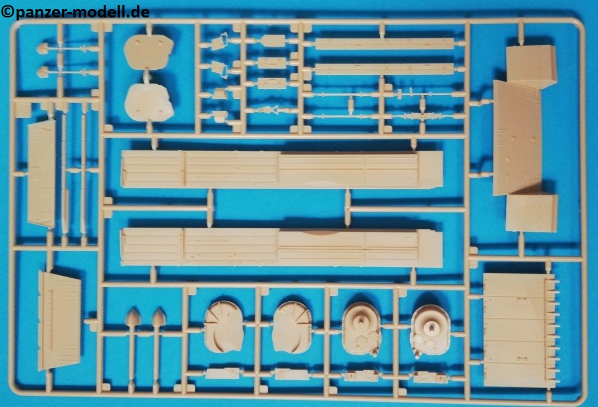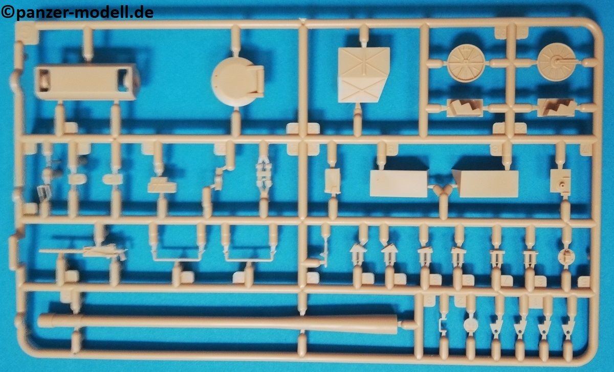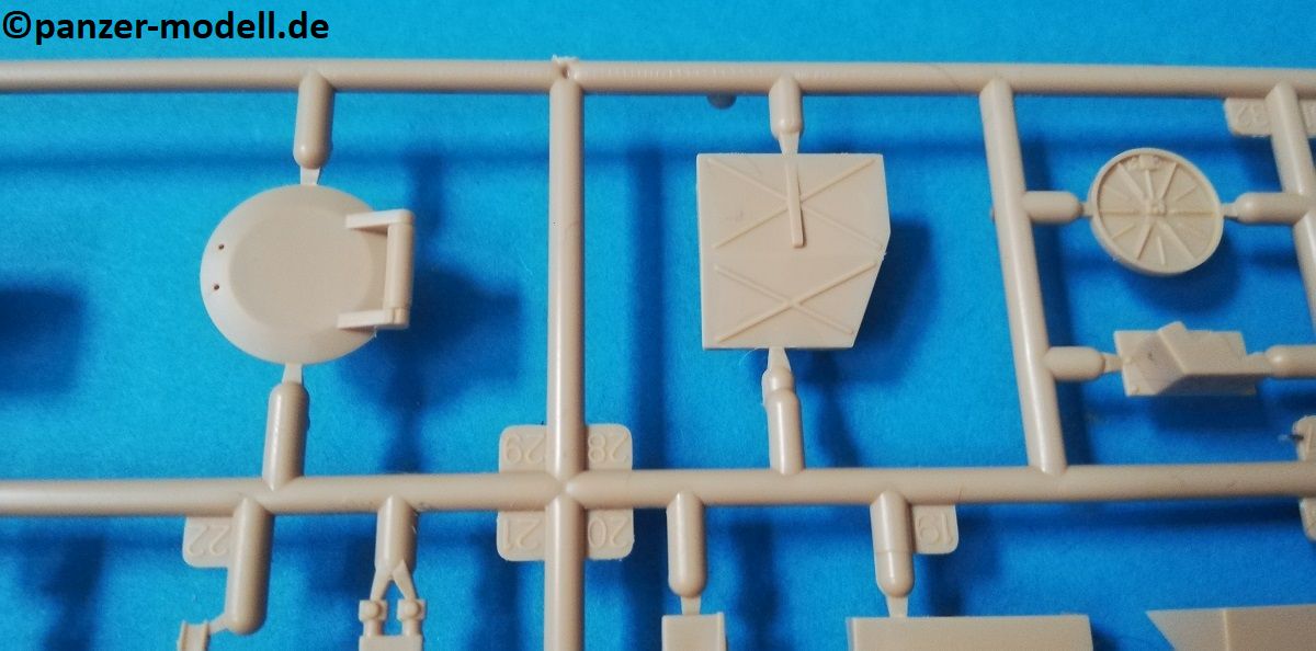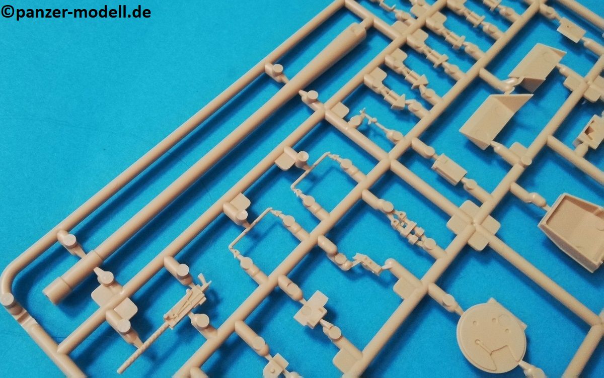 Alle Griffe und Ösen sind am Modell angespritzt. Dies vereinfacht den Zusammenbau sehr, und lässt diesen zügig voranschreiten. Wem dies nicht gefällt, kann diese abtrennen und durch Draht ersetzten, was allerdings den Bau um einiges verlängern wird. Wer mit der angebotenen Lösung zufrieden ist, erhält hier sehr gut gestaltete Griffe und keine „Klumpen“.
