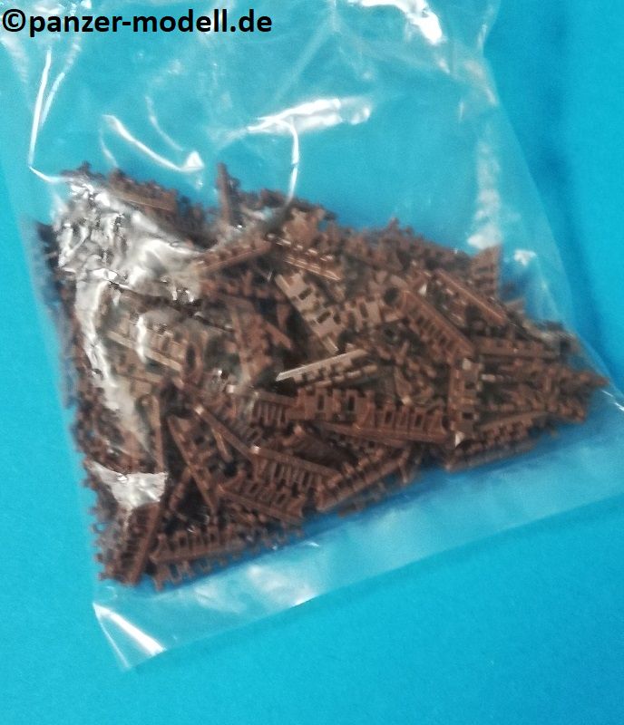 Erfreulicherweise befinden sich die Ketten separat verpackt in einem Beutel bereits abgetrennt und versäubert und zum Bau bereit. Diese lassen sich dann einfach ohne zu kleben ineinander klicken - vorbildlich. Insgesamt machen die Ketten einen hervorragenden Eindruck und geben die Centurion Kette hervorragend wieder.
