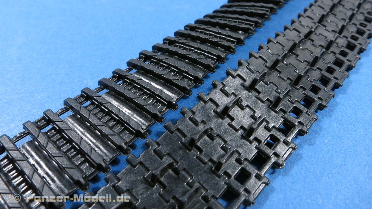 Für das Laufwerk selber hat Amusing Hobby Vinylketten beigelegt, die den Arbeitsaufwand massiv erleichtern. Und für Vinylketten wirklich schön und ansehnlich gemacht, sauber, scharfe Details und tatsächlich keine Auswerferstellen. In der Tat gar nicht mal so übel und eine valide Option.