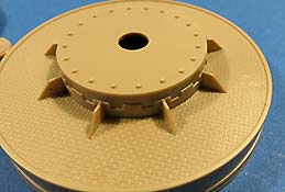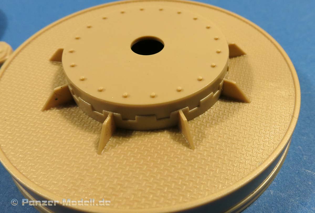 Neu in dem Bausatz ist die neue Grundplatte, die den ehemaligen Turmdrehkranz abdeckt und als Basis für die Raketenstartlafette dient. Diese hat sehr schöne und feine Details und macht einen ausgezeichneten Eindruck.