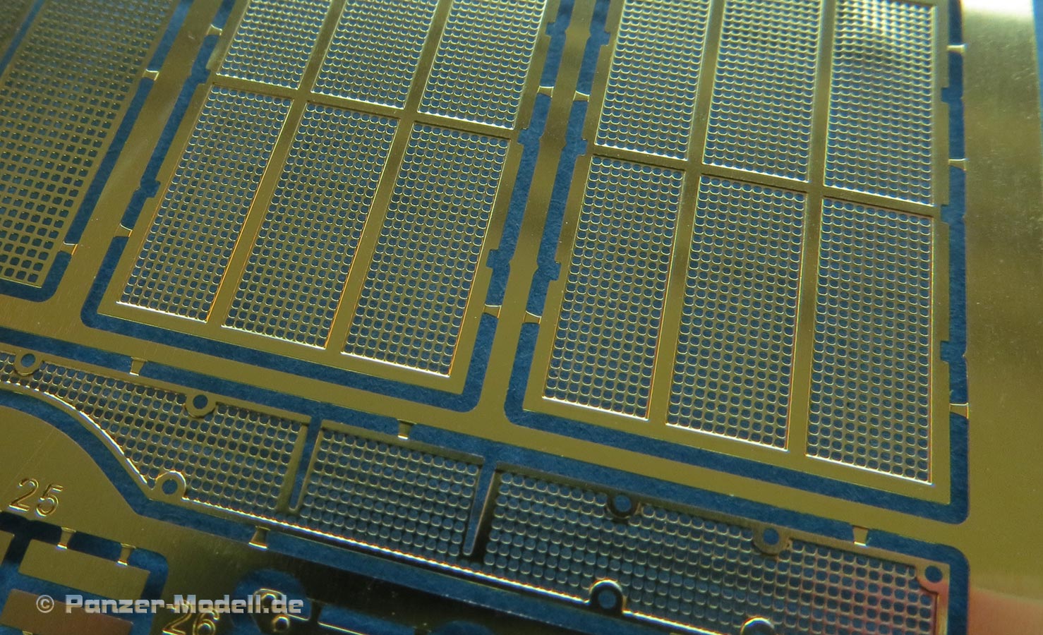 Die Detaillierung am gesamten Bausatz bewegt sich auf Top Niveau. Einige der Details werden auch durch die beiliegenden, nicht optionalen Fotoätzteile, dargestellt - zum Beispiel die Lüftergitter in feiner und sauberer Gitterstruktur. An den Spritzlingen ist augenscheinlich weder Fischhaut zu finden noch sind auffällige Auswerfermarken an später sichtbaren Stellen zu erkennen.