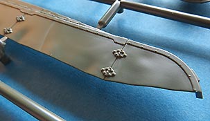 Bei den Motorraumabdeckungen kommen auch viele der Fotoätzteile zum Einsatz hier natürlich in Form der Gitter. Die typischen Treibstoffleitungen, welche von den Heckfässern zum Motor führen, werden mit Hilfe einer Spiralfeder mit eingelegtem Draht simuliert.