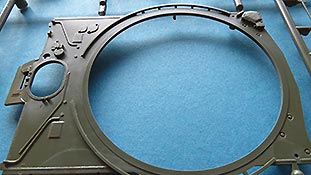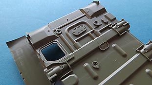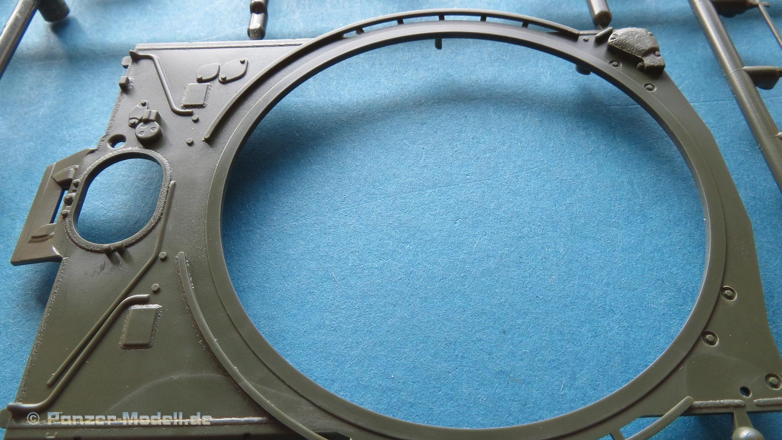 Die mittlere Abdeckplatte der Oberwanne behinhaltet den Turmdrehkranz und die Fahrerluke. Letztere lässt sich offen oder geschossen darstellen.