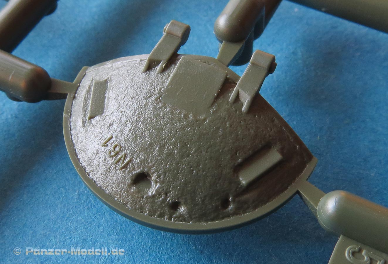 Die Nebelwurfbecher an den Turmseiten machen einen guten Eindruck. Die Kommandantenkuppel kann mit geschlossener oder offener Luke gebaut werden.