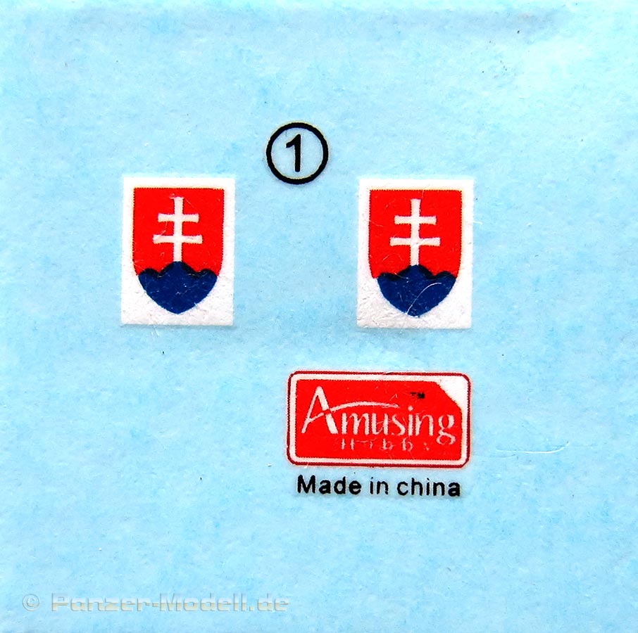 Interessanterweise fehlt es hier an Farbangaben zur Bemalung und Decalanbringung. Letzteres ist aber nicht schlimm, da der Decalbogen eh nur aus zwei Emblemen besteht, die an den Turmseiten angebracht werden. Ein Farbprofil im Seitenriss ist auf der Kartonseite angebracht