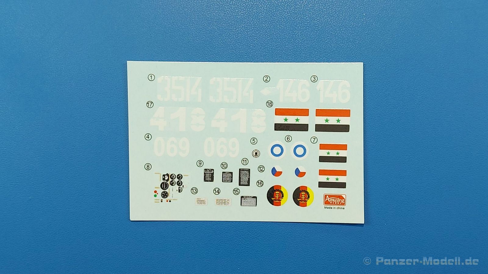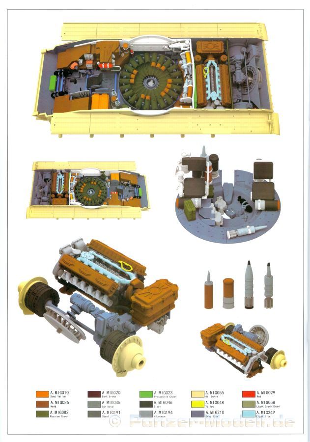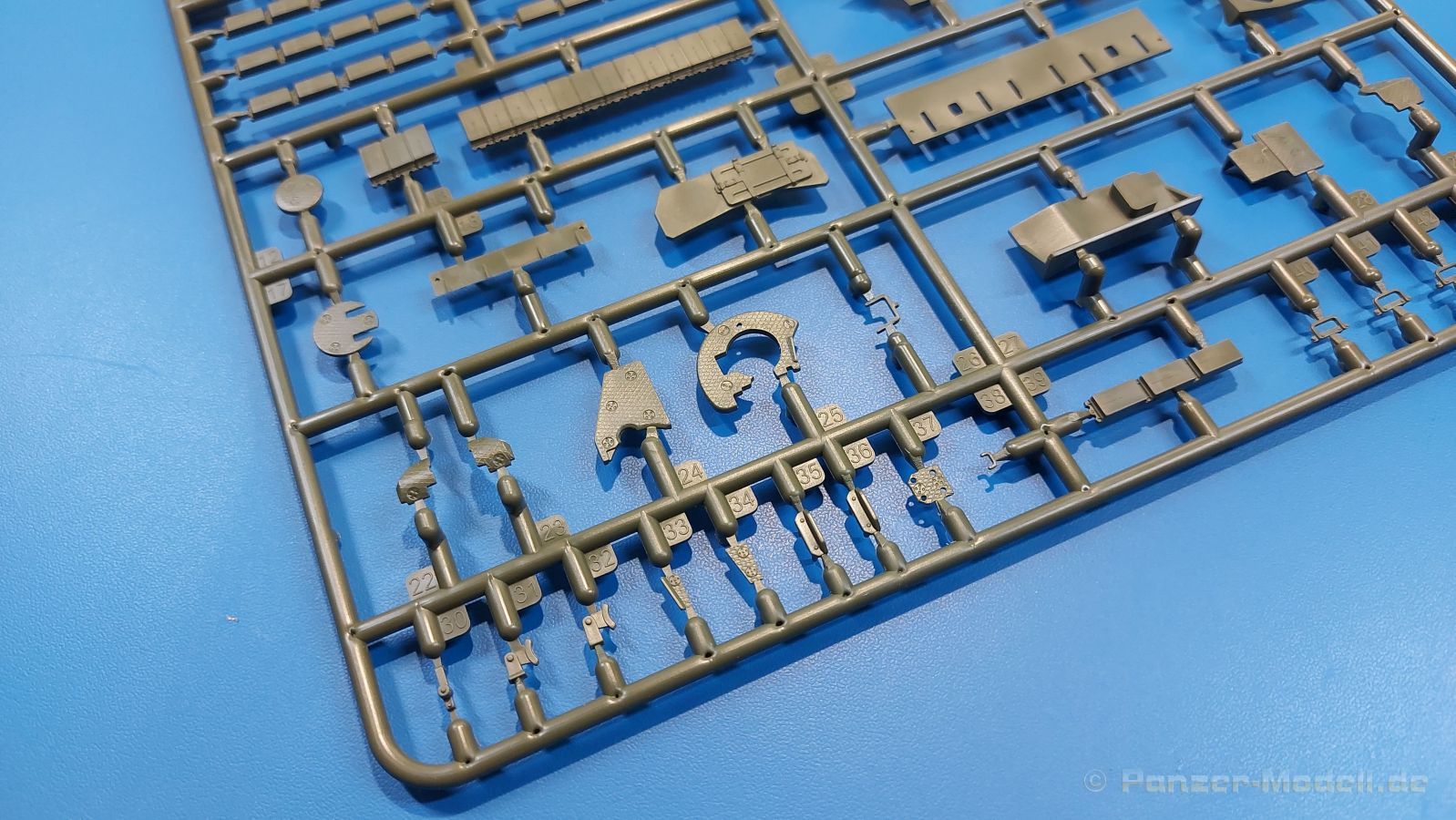 Die größtenteils schwarz-weiße Bauanleitung mit farbigen Elementen im A4-Format hat 36 Seiten. Zu Beginn finden wir nur Arbeits- und Sicherheitshinweise, sowie Symbolerklärungen. Die kurzgehaltenen Hinweise sind in Englisch, Japanisch und Chinesisch. Die folgenden beiden Seiten zeigen in großformatigen, farbigen Bildern die Bemalung der Inneneinrichtung mit Ammo by Mig-Farben. Zwei weitere Seiten beinhalten die Spritzling und Teileübersicht. Der Rest zeigt uns in 54 übersichtlichen, leicht verständlich Bauschritten den Weg zum fertigen Modell. Auf den letzten drei Seiten sehen wir die Anbringung der äußeren Decals und die Bemalung der drei Decalvarianten. Auch hier werden die Farbangaben zur Bemalung und Alterung für Ammo by Mig-Farben gemacht. In Deutschland ist der Bausatz seit November 2021 erhältlich und liegt knapp unter 70€. Bei dem Gebotenen ein angemessener Preis. Die sehr komplexe Inneneinrichtung und PE fordern Modellbauerfahrung! Das Ergebnis wird sich sicherlich sehen lassen können. Da es heutzutage genügend Vorbildfotos, z.B. grad aus Syrien, gibt, werden sicherlich bald einige Dioramen zu sehen sein.