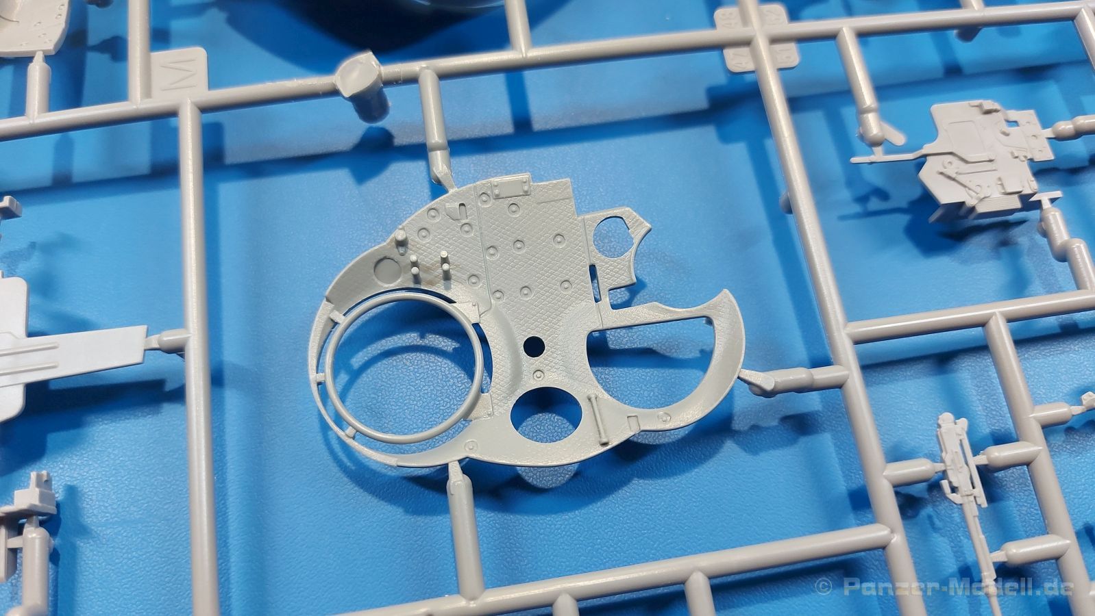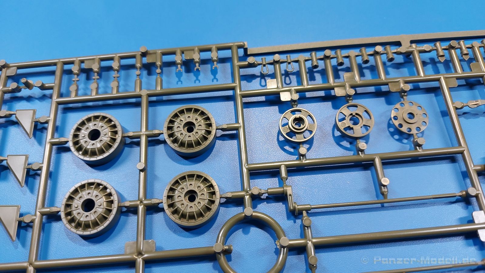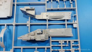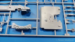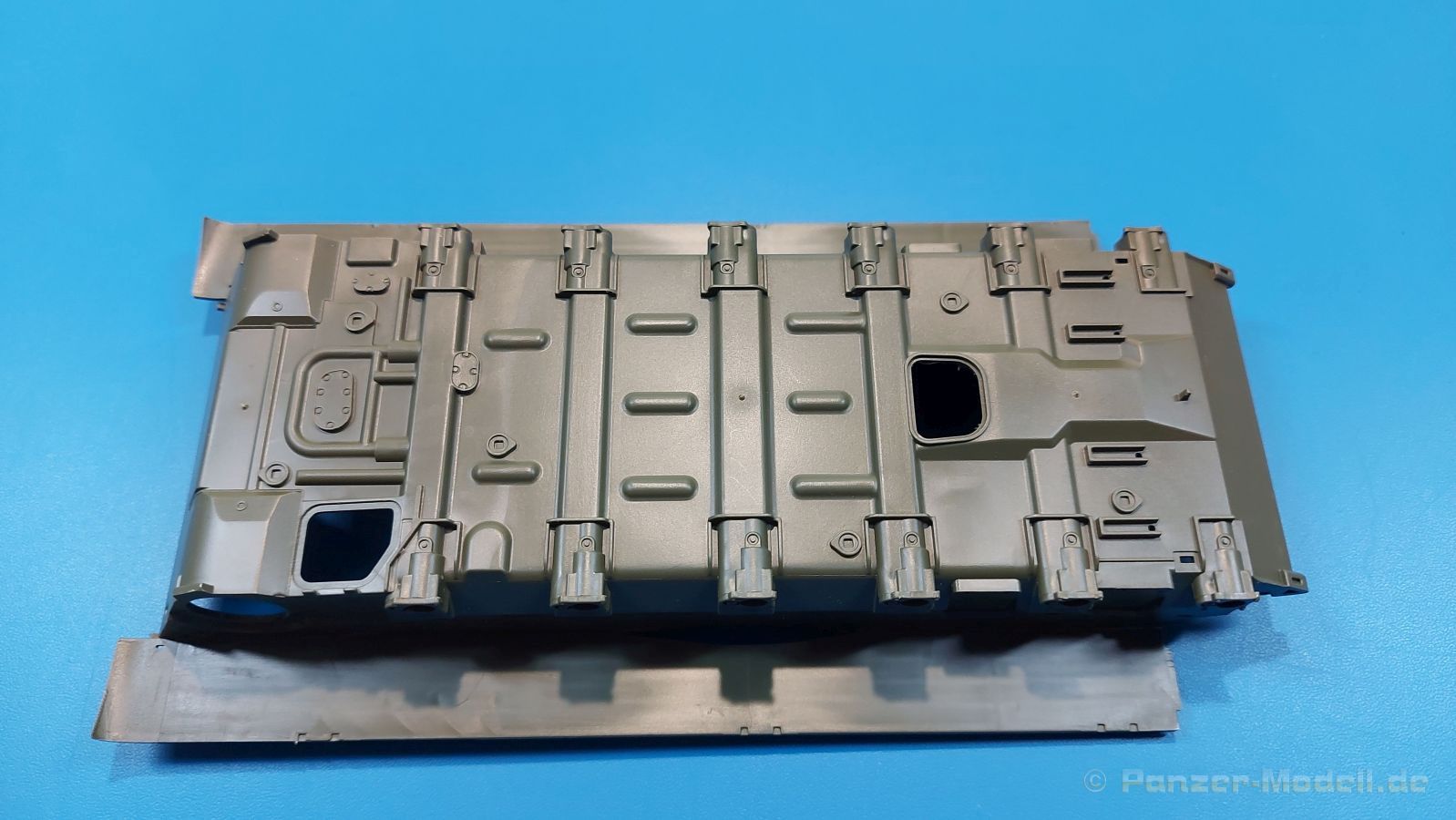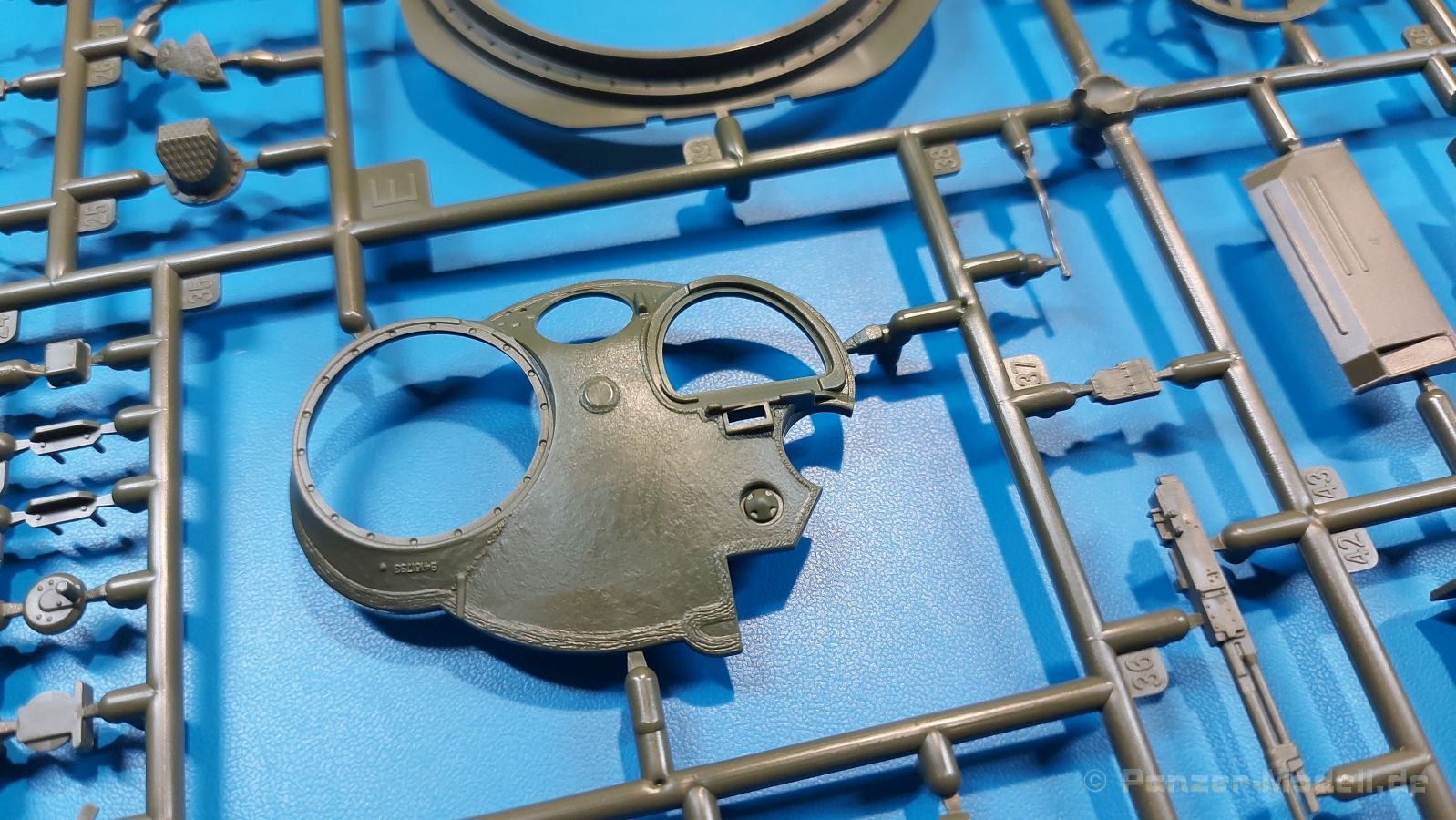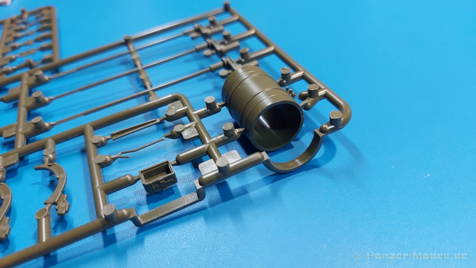 Der Bausatz: Nicht nur im Original gibt es jede Menge T-72. Modellbauer können sich sicherlich nicht über Mangel an entsprechenden Modellen beschweren. Amusing Hobby hat dem ganzen noch einen draufgesetzt und den ersten T-72 mit vollständiger Inneneinrichtung (Fahrer-, Motor- und Kampfraum inkl. Ladekarussel und -mechanismus) auf den Markt gebracht. Auch dieser T-72 AV Bausatz ist voll ausgestattet. Um die ganzen Spritzlinge aufzunehmen, ist der Karton mit 400 x 260 x 120 mm auch etwas größer ausgefallen. Er enthält 54 Spritzlinge (in olivgrün, hellgrau, braun und durchsichtig), die Unterwanne, Turm, 1 Metallfeder, 1 PE-Platine, 1 Kabel, 1 Draht, 1 Abziehbilderbogen und die Bauanleitung. Im Standard der heutigen Zeit ist die Qualität der Teile ausgezeichnet. Scharfe Details, teils kleine und feine Teile, kein Verzug oder Versatz vorhanden. Es gibt zwar Auswerferspuren, aber nur dort, wo sie nach dem Zusammenbau nicht mehr zu sehen sind. Einige hervorstehende Auswerferreste auf manchen Teilen, hier z.B. an den Innenseiten der Kettenschürzen und dem Grabschild, sollten aber entfernt werden, da die Teile sonst nicht korrekt montiert werden können. Das Klarsichtteile für die Scheinwerferscheiben sind schön geriffelt, die Gussstruktur am Turm ist glaubhaft wiedergegeben und wenn man genau hinsieht, sieht man Gussnummern an den Kettengliedern. Die Spritzlinge sind farblich getrennt - Olivgrün für den eigentlichen Panzer, Hellgrau für die Inneneinrichtung und Braun für die Kettenglieder und -bolzen. Schauen wir uns mal die Wanne an. Sie besteht aus einem Teil, das Unterboden und die Seitenteile beinhaltet. Grad der T-72-typische und auffällige Unterboden ist sehr gut dargestellt. Öffnungen für Wartungsdeckel und Notausstiegsluke sind vorhanden. Innen sind zwar mehrere Auswerferspuren zu sehen, aber diese werden wohl komplett von der Inneneinrichtung verdeckt. Die Inneneinrichtung ist ein Modell für sich. Beginnend beim Fahrerraum mit der gesamten Pedalerie, sämtlichen Instrumenten, dem hervorragenden Fahrersitz über die Munitionskästen, Staukästen, Feuerlöscher bis zum unglaublich gut dargestellten Karussell des Autoladers, in dem verschiedene Munitionssorten optional eingesetzt werden können, ist alles vorhanden. Auch im Heck ist der Dieselmotor mit Turboaufladung, sowie der Kühler (der Lüfterpropeller ist ein echter Hingucker!), die Treibstofftanks und das Getriebe vorhanden. Es sind ebenfalls Luftfilter, die Lichtmaschine, wichtige Leitungen und Verstrebungen dargestellt. Auch der Turm ist vollständig eingerichtet. Der Bau des Turmes beginnt mit dem Bau der 125mm Kanone 2A46(D-81). Hier werden zunächst der Verschluss und der Rest der Waffenanlage zusammengesetzt, dann folgen der Richtschützen- und der Kommandantensitz und diverse Anbauteile. Viele Teile der Ladeautomatik wollen auch zusammengesetzt werden. Der Turm besteht aus einer Innen-, einer Außenschale und einem Turmdrehkranz. Zusätzlich wird noch ein Teil des Turmdaches separat eingesetzt. So erreicht man einen ungeheuren Realismus in der Materialdicke. Zudem sind zum Beispiel alle Schutzpolsterungen und Nietungen genauestens dargestellt. Natürlich können alle Luken offen dargestellt werden, und die Maschinengewehre (Koaxial und Flugabwehr) sind mit offenen Rohrmündungen wiedergegeben. Die Optiken des Richtschützen und des Kommandanten, sowie die Funkanlage kann sich wirklich sehen lassen. Beim Fahrwerk werden die Drehstäbe (mit den angegossenen Schwingarmen) in die hervorragend wiedergegeben Unterwanne geklebt, und bleiben beweglich. Dadurch kann das Modell auch an unebene Untergründe angepasst werden, und macht in jedem Diorama eine gute Figur. Auch die Trieb-, Leiträder, Lauf- und Stützrollen sind sehr schön wiedergegeben und setzen sich erfreulicherweise aus nur wenigen Teilen zusammen, ohne hier an der Detaillierung zu sparen. Die Ketten sind als Einzelgliedketten ausgelegt. Schaut man sich die Glieder näher an, entdeckt man in den Riffeln der Außenseite feinste Gussnummern. Jede Seite benötigt fünfundneunzig Kettenglieder. Diese befinden sich an achtundzwanzig Spritzlingen zu je 8 Gliedern, die einzeln abgetrennt und versäubert werden wollen. Die Kette soll voll beweglich bleiben. Dies wird mithilfe der Bolzenlöcher in den Gliedern und separaten Bolzen erreicht. Die Kettenbolzen befinden sich an sieben eigenen Gussästen. Diese können zu Gruppen aus je zwei Bolzen bzw. vier Bolzen ausgeschnitten werden und mit Hilfe einer Montagehilfe, in welche die einzelnen Kettenglieder eingelegt werden, in die Bohrungen der einzelnen Glieder eingesetzt werden. Der Kettenbau wird sicherlich einen gewissen Teil der Arbeit an diesem Bausatz ausmachen. Die Heckplatte hat bereits einen großen Wartungsdeckel mit fünf Schraubenköpfen angegossen. Zwei Ersatzkettenglieder plus deren Halterungen und zwei Bergehaken bringt man beidseitig des Wartungsdeckels an. Der typische Bergebalken fehlt natürlich auch nicht. Er zeigt Trocknungsrisse des Holzes, aber kaum eine Maserung. An den oberen Rand kommen die Halterungen für die Kraftstofffässer. Die typischen Heckfässer sind im Slide-Mould-Verfahren hergestellt, haben bereits die Haltebänder und Leitungsanschlüsse bereits angegossen und werden nur mit den Seitenteilen komplettiert. Die typischen Treibstoffleitungen, welche zum Motor führen, werden mit Hilfe einer Spiralfeder mit eingelegtem Draht simuliert. Die Bugplatte besteht aus drei Platten - Innenplatte mit Elementen der Inneneinrichtung, der eigentlich Panzerplatte und einer Zusatzpanzerplatte. Auf diese Zusatzpanzerplatte werden die Kacheln der Reaktivpanzerung, bestehend aus Einzel- und Gruppenelementen, aufgesetzt. Die Fahrscheinwerfer sind ausgehöhlt und bekommen geriffelte Klarsichtgläser. Die Scheinwerferhalterung sind etwas „komisch“ aufgeteilt. Man klebt die geteilten Gestänge stumpf aufeinander. Die Kettenbleche sind bereits an der Unterwanne angegossen. Es kommen einige Verst