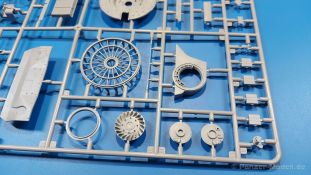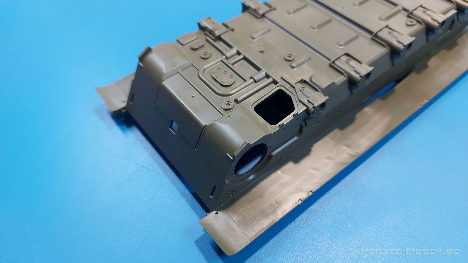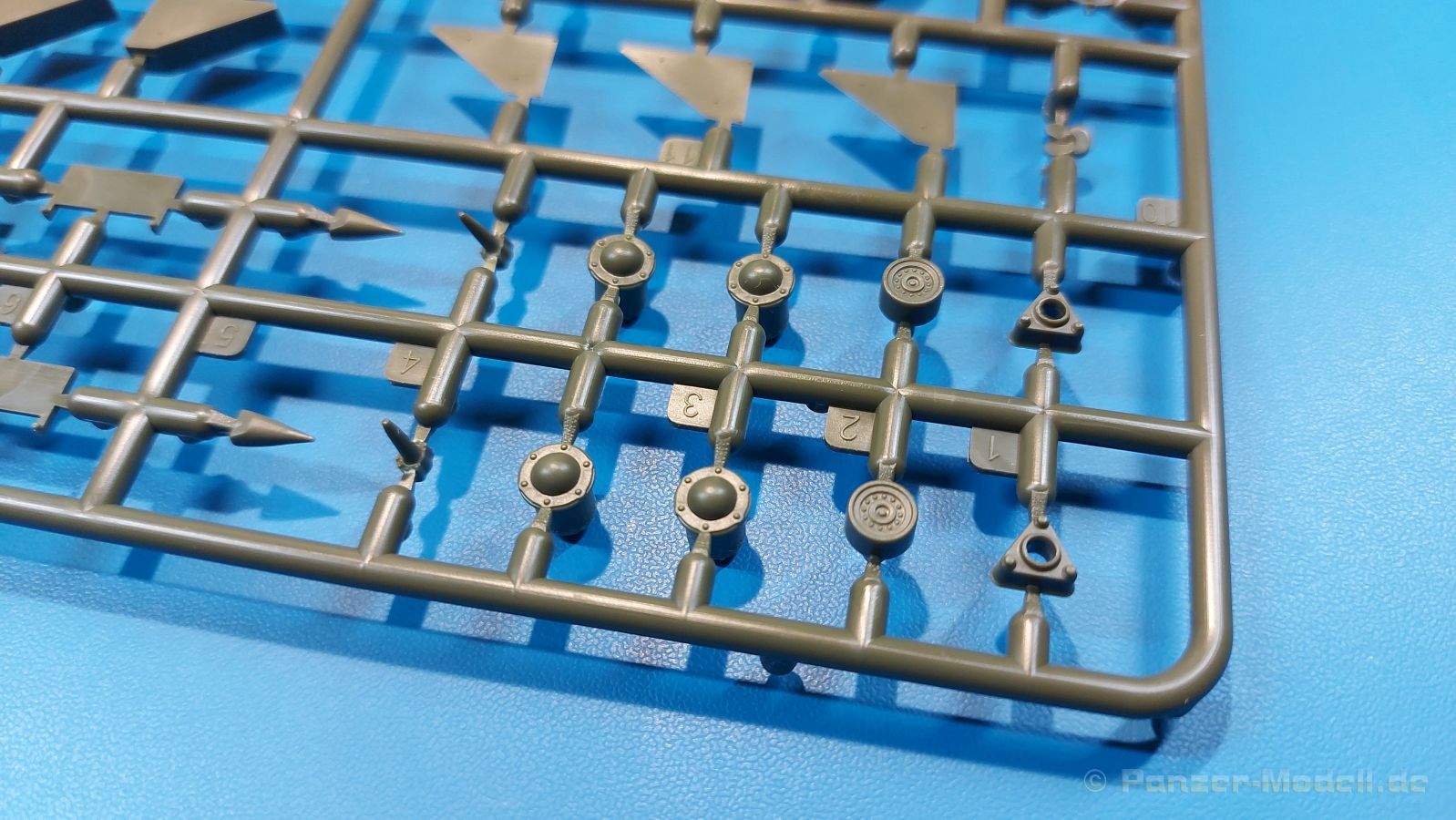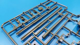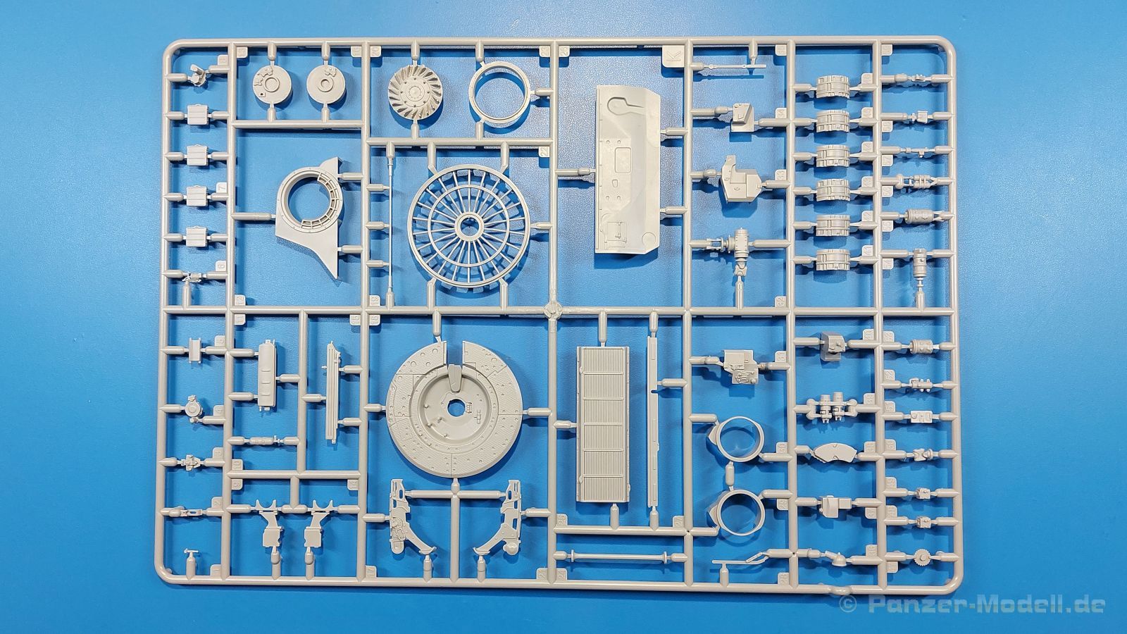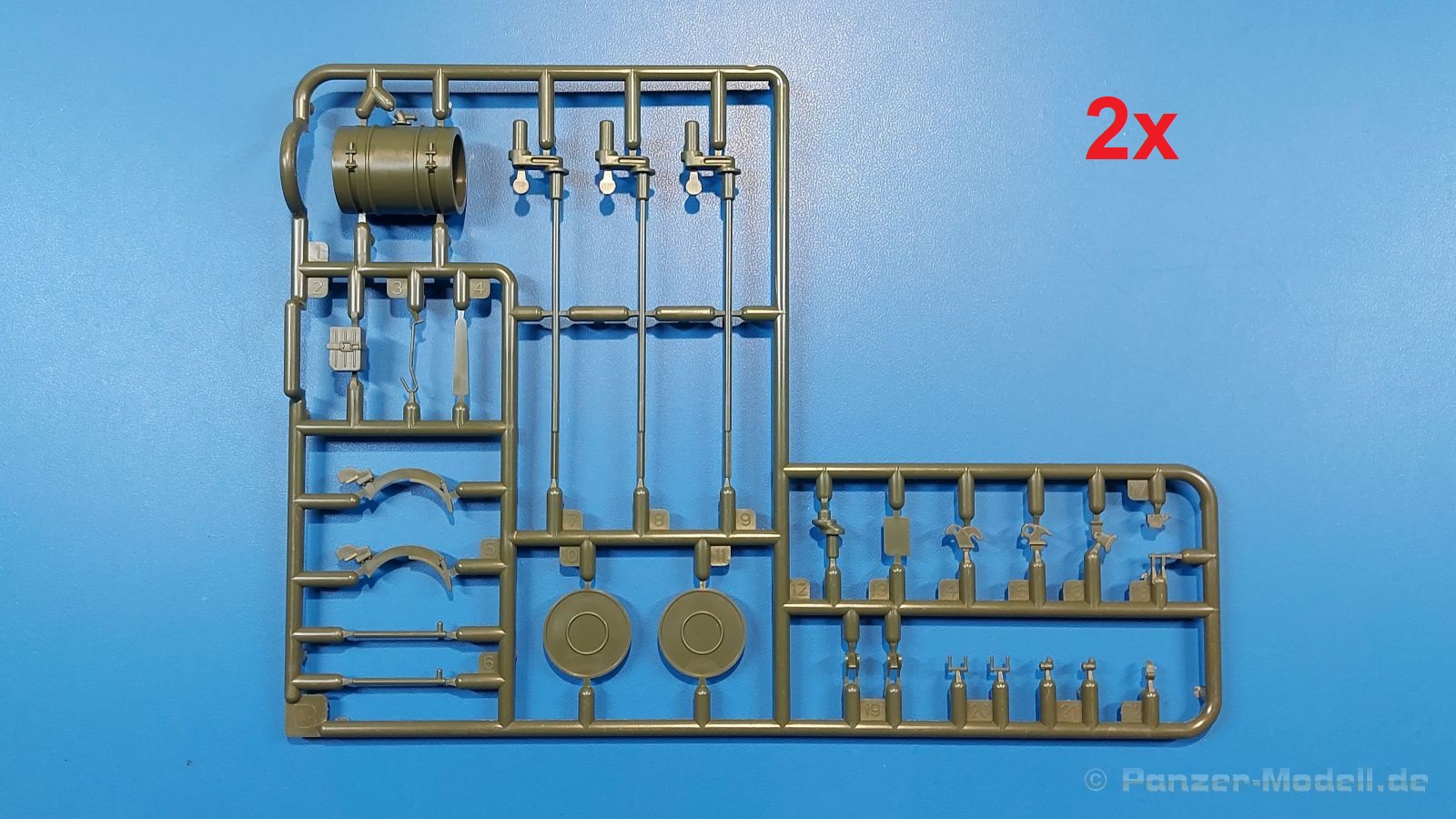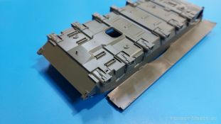 Der Bausatz: Nicht nur im Original gibt es jede Menge T-72. Modellbauer können sich sicherlich nicht über Mangel an entsprechenden Modellen beschweren. Amusing Hobby hat dem ganzen noch einen draufgesetzt und den ersten T-72 mit vollständiger Inneneinrichtung (Fahrer-, Motor- und Kampfraum inkl. Ladekarussel und -mechanismus) auf den Markt gebracht. Auch dieser T-72 AV Bausatz ist voll ausgestattet. Um die ganzen Spritzlinge aufzunehmen, ist der Karton mit 400 x 260 x 120 mm auch etwas größer ausgefallen. Er enthält 54 Spritzlinge (in olivgrün, hellgrau, braun und durchsichtig), die Unterwanne, Turm, 1 Metallfeder, 1 PE-Platine, 1 Kabel, 1 Draht, 1 Abziehbilderbogen und die Bauanleitung. Im Standard der heutigen Zeit ist die Qualität der Teile ausgezeichnet. Scharfe Details, teils kleine und feine Teile, kein Verzug oder Versatz vorhanden. Es gibt zwar Auswerferspuren, aber nur dort, wo sie nach dem Zusammenbau nicht mehr zu sehen sind. Einige hervorstehende Auswerferreste auf manchen Teilen, hier z.B. an den Innenseiten der Kettenschürzen und dem Grabschild, sollten aber entfernt werden, da die Teile sonst nicht korrekt montiert werden können. Das Klarsichtteile für die Scheinwerferscheiben sind schön geriffelt, die Gussstruktur am Turm ist glaubhaft wiedergegeben und wenn man genau hinsieht, sieht man Gussnummern an den Kettengliedern. Die Spritzlinge sind farblich getrennt - Olivgrün für den eigentlichen Panzer, Hellgrau für die Inneneinrichtung und Braun für die Kettenglieder und -bolzen. Schauen wir uns mal die Wanne an. Sie besteht aus einem Teil, das Unterboden und die Seitenteile beinhaltet. Grad der T-72-typische und auffällige Unterboden ist sehr gut dargestellt. Öffnungen für Wartungsdeckel und Notausstiegsluke sind vorhanden. Innen sind zwar mehrere Auswerferspuren zu sehen, aber diese werden wohl komplett von der Inneneinrichtung verdeckt. Die Inneneinrichtung ist ein Modell für sich. Beginnend beim Fahrerraum mit der gesamten Pedalerie, sämtlichen Instrumenten, dem hervorragenden Fahrersitz über die Munitionskästen, Staukästen, Feuerlöscher bis zum unglaublich gut dargestellten Karussell des Autoladers, in dem verschiedene Munitionssorten optional eingesetzt werden können, ist alles vorhanden. Auch im Heck ist der Dieselmotor mit Turboaufladung, sowie der Kühler (der Lüfterpropeller ist ein echter Hingucker!), die Treibstofftanks und das Getriebe vorhanden. Es sind ebenfalls Luftfilter, die Lichtmaschine, wichtige Leitungen und Verstrebungen dargestellt. Auch der Turm ist vollständig eingerichtet. Der Bau des Turmes beginnt mit dem Bau der 125mm Kanone 2A46(D-81). Hier werden zunächst der Verschluss und der Rest der Waffenanlage zusammengesetzt, dann folgen der Richtschützen- und der Kommandantensitz und diverse Anbauteile. Viele Teile der Ladeautomatik wollen auch zusammengesetzt werden. Der Turm besteht aus einer Innen-, einer Außenschale und einem Turmdrehkranz. Zusätzlich wird noch ein Teil des Turmdaches separat eingesetzt. So erreicht man einen ungeheuren Realismus in der Materialdicke. Zudem sind zum Beispiel alle Schutzpolsterungen und Nietungen genauestens dargestellt. Natürlich können alle Luken offen dargestellt werden, und die Maschinengewehre (Koaxial und Flugabwehr) sind mit offenen Rohrmündungen wiedergegeben. Die Optiken des Richtschützen und des Kommandanten, sowie die Funkanlage kann sich wirklich sehen lassen. Beim Fahrwerk werden die Drehstäbe (mit den angegossenen Schwingarmen) in die hervorragend wiedergegeben Unterwanne geklebt, und bleiben beweglich. Dadurch kann das Modell auch an unebene Untergründe angepasst werden, und macht in jedem Diorama eine gute Figur. Auch die Trieb-, Leiträder, Lauf- und Stützrollen sind sehr schön wiedergegeben und setzen sich erfreulicherweise aus nur wenigen Teilen zusammen, ohne hier an der Detaillierung zu sparen. Die Ketten sind als Einzelgliedketten ausgelegt. Schaut man sich die Glieder näher an, entdeckt man in den Riffeln der Außenseite feinste Gussnummern. Jede Seite benötigt fünfundneunzig Kettenglieder. Diese befinden sich an achtundzwanzig Spritzlingen zu je 8 Gliedern, die einzeln abgetrennt und versäubert werden wollen. Die Kette soll voll beweglich bleiben. Dies wird mithilfe der Bolzenlöcher in den Gliedern und separaten Bolzen erreicht. Die Kettenbolzen befinden sich an sieben eigenen Gussästen. Diese können zu Gruppen aus je zwei Bolzen bzw. vier Bolzen ausgeschnitten werden und mit Hilfe einer Montagehilfe, in welche die einzelnen Kettenglieder eingelegt werden, in die Bohrungen der einzelnen Glieder eingesetzt werden. Der Kettenbau wird sicherlich einen gewissen Teil der Arbeit an diesem Bausatz ausmachen. Die Heckplatte hat bereits einen großen Wartungsdeckel mit fünf Schraubenköpfen angegossen. Zwei Ersatzkettenglieder plus deren Halterungen und zwei Bergehaken bringt man beidseitig des Wartungsdeckels an. Der typische Bergebalken fehlt natürlich auch nicht. Er zeigt Trocknungsrisse des Holzes, aber kaum eine Maserung. An den oberen Rand kommen die Halterungen für die Kraftstofffässer. Die typischen Heckfässer sind im Slide-Mould-Verfahren hergestellt, haben bereits die Haltebänder und Leitungsanschlüsse bereits angegossen und werden nur mit den Seitenteilen komplettiert. Die typischen Treibstoffleitungen, welche zum Motor führen, werden mit Hilfe einer Spiralfeder mit eingelegtem Draht simuliert. Die Bugplatte besteht aus drei Platten - Innenplatte mit Elementen der Inneneinrichtung, der eigentlich Panzerplatte und einer Zusatzpanzerplatte. Auf diese Zusatzpanzerplatte werden die Kacheln der Reaktivpanzerung, bestehend aus Einzel- und Gruppenelementen, aufgesetzt. Die Fahrscheinwerfer sind ausgehöhlt und bekommen geriffelte Klarsichtgläser. Die Scheinwerferhalterung sind etwas „komisch“ aufgeteilt. Man klebt die geteilten Gestänge stumpf aufeinander. Die Kettenbleche sind bereits an der Unterwanne angegossen. Es kommen einige Verst
