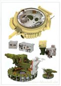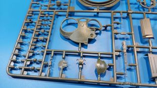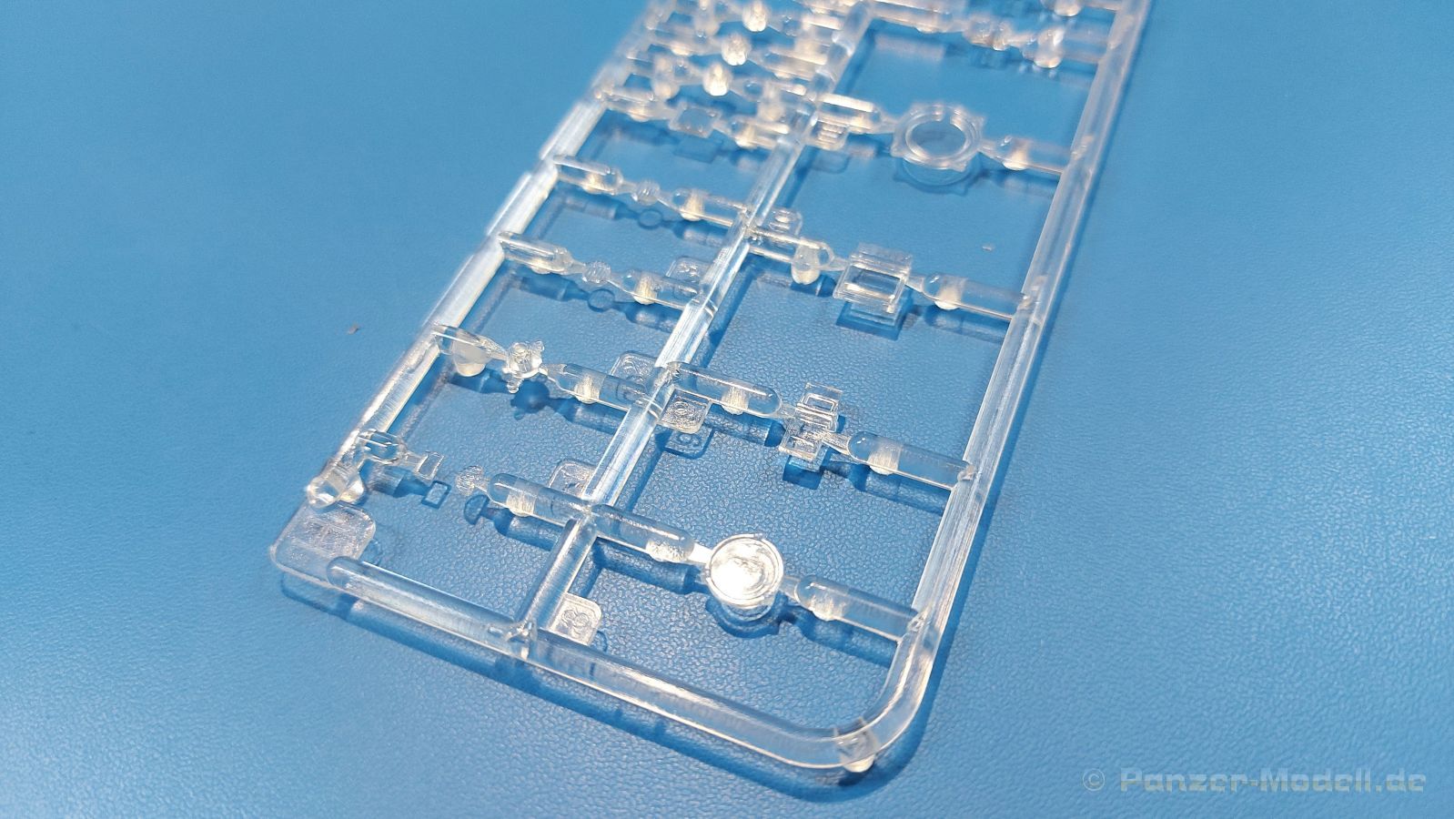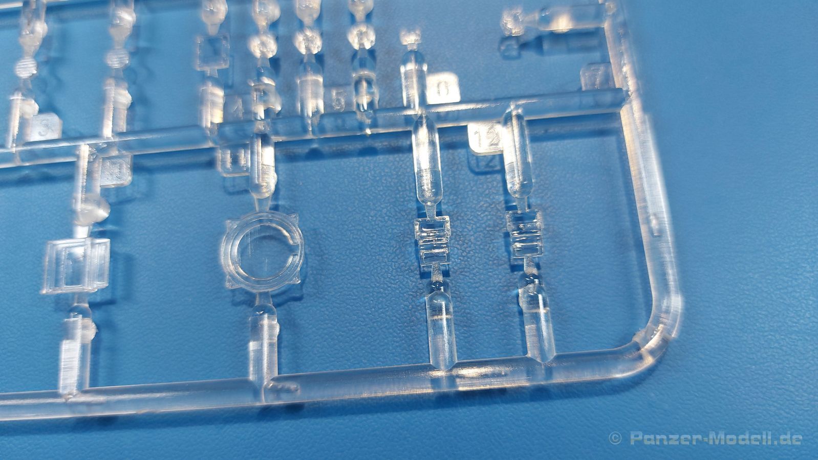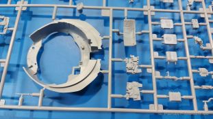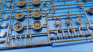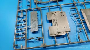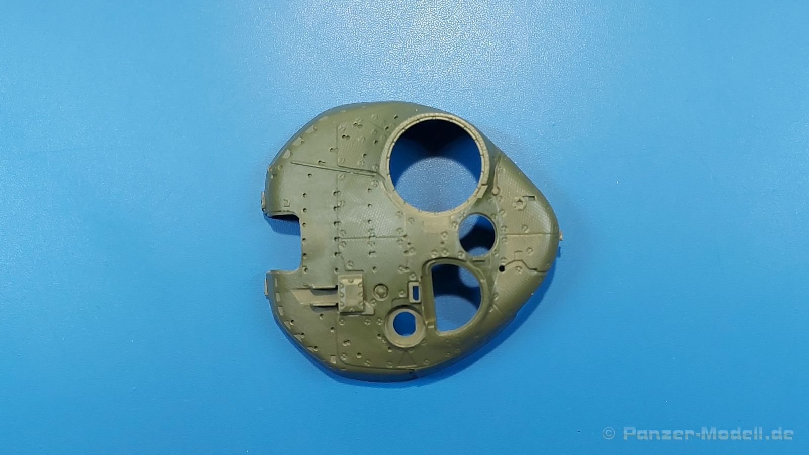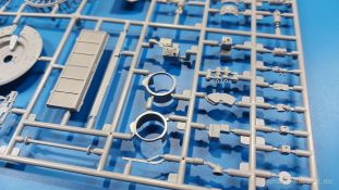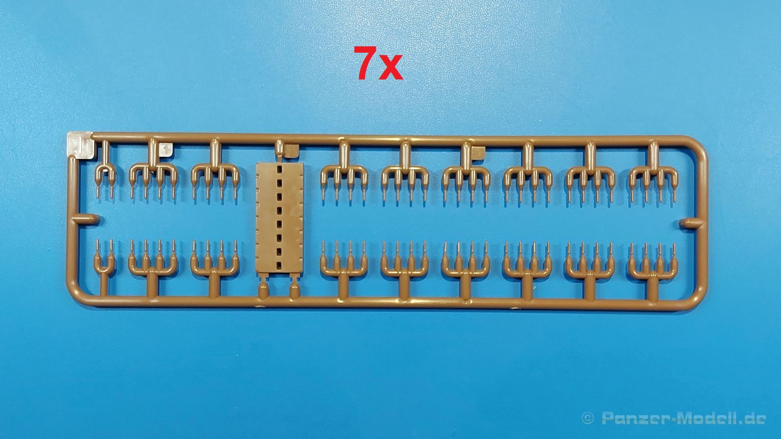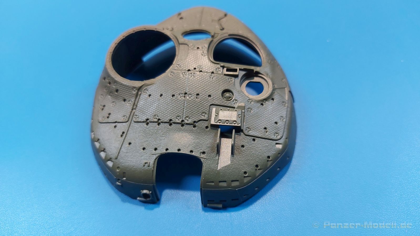 Der Bausatz: Nicht nur im Original gibt es jede Menge T-72. Modellbauer können sich sicherlich nicht über Mangel an entsprechenden Modellen beschweren. Amusing Hobby hat dem ganzen noch einen draufgesetzt und den ersten T-72 mit vollständiger Inneneinrichtung (Fahrer-, Motor- und Kampfraum inkl. Ladekarussel und -mechanismus) auf den Markt gebracht. Auch dieser T-72 AV Bausatz ist voll ausgestattet. Um die ganzen Spritzlinge aufzunehmen, ist der Karton mit 400 x 260 x 120 mm auch etwas größer ausgefallen. Er enthält 54 Spritzlinge (in olivgrün, hellgrau, braun und durchsichtig), die Unterwanne, Turm, 1 Metallfeder, 1 PE-Platine, 1 Kabel, 1 Draht, 1 Abziehbilderbogen und die Bauanleitung. Im Standard der heutigen Zeit ist die Qualität der Teile ausgezeichnet. Scharfe Details, teils kleine und feine Teile, kein Verzug oder Versatz vorhanden. Es gibt zwar Auswerferspuren, aber nur dort, wo sie nach dem Zusammenbau nicht mehr zu sehen sind. Einige hervorstehende Auswerferreste auf manchen Teilen, hier z.B. an den Innenseiten der Kettenschürzen und dem Grabschild, sollten aber entfernt werden, da die Teile sonst nicht korrekt montiert werden können. Das Klarsichtteile für die Scheinwerferscheiben sind schön geriffelt, die Gussstruktur am Turm ist glaubhaft wiedergegeben und wenn man genau hinsieht, sieht man Gussnummern an den Kettengliedern. Die Spritzlinge sind farblich getrennt - Olivgrün für den eigentlichen Panzer, Hellgrau für die Inneneinrichtung und Braun für die Kettenglieder und -bolzen. Schauen wir uns mal die Wanne an. Sie besteht aus einem Teil, das Unterboden und die Seitenteile beinhaltet. Grad der T-72-typische und auffällige Unterboden ist sehr gut dargestellt. Öffnungen für Wartungsdeckel und Notausstiegsluke sind vorhanden. Innen sind zwar mehrere Auswerferspuren zu sehen, aber diese werden wohl komplett von der Inneneinrichtung verdeckt. Die Inneneinrichtung ist ein Modell für sich. Beginnend beim Fahrerraum mit der gesamten Pedalerie, sämtlichen Instrumenten, dem hervorragenden Fahrersitz über die Munitionskästen, Staukästen, Feuerlöscher bis zum unglaublich gut dargestellten Karussell des Autoladers, in dem verschiedene Munitionssorten optional eingesetzt werden können, ist alles vorhanden. Auch im Heck ist der Dieselmotor mit Turboaufladung, sowie der Kühler (der Lüfterpropeller ist ein echter Hingucker!), die Treibstofftanks und das Getriebe vorhanden. Es sind ebenfalls Luftfilter, die Lichtmaschine, wichtige Leitungen und Verstrebungen dargestellt. Auch der Turm ist vollständig eingerichtet. Der Bau des Turmes beginnt mit dem Bau der 125mm Kanone 2A46(D-81). Hier werden zunächst der Verschluss und der Rest der Waffenanlage zusammengesetzt, dann folgen der Richtschützen- und der Kommandantensitz und diverse Anbauteile. Viele Teile der Ladeautomatik wollen auch zusammengesetzt werden. Der Turm besteht aus einer Innen-, einer Außenschale und einem Turmdrehkranz. Zusätzlich wird noch ein Teil des Turmdaches separat eingesetzt. So erreicht man einen ungeheuren Realismus in der Materialdicke. Zudem sind zum Beispiel alle Schutzpolsterungen und Nietungen genauestens dargestellt. Natürlich können alle Luken offen dargestellt werden, und die Maschinengewehre (Koaxial und Flugabwehr) sind mit offenen Rohrmündungen wiedergegeben. Die Optiken des Richtschützen und des Kommandanten, sowie die Funkanlage kann sich wirklich sehen lassen. Beim Fahrwerk werden die Drehstäbe (mit den angegossenen Schwingarmen) in die hervorragend wiedergegeben Unterwanne geklebt, und bleiben beweglich. Dadurch kann das Modell auch an unebene Untergründe angepasst werden, und macht in jedem Diorama eine gute Figur. Auch die Trieb-, Leiträder, Lauf- und Stützrollen sind sehr schön wiedergegeben und setzen sich erfreulicherweise aus nur wenigen Teilen zusammen, ohne hier an der Detaillierung zu sparen. Die Ketten sind als Einzelgliedketten ausgelegt. Schaut man sich die Glieder näher an, entdeckt man in den Riffeln der Außenseite feinste Gussnummern. Jede Seite benötigt fünfundneunzig Kettenglieder. Diese befinden sich an achtundzwanzig Spritzlingen zu je 8 Gliedern, die einzeln abgetrennt und versäubert werden wollen. Die Kette soll voll beweglich bleiben. Dies wird mithilfe der Bolzenlöcher in den Gliedern und separaten Bolzen erreicht. Die Kettenbolzen befinden sich an sieben eigenen Gussästen. Diese können zu Gruppen aus je zwei Bolzen bzw. vier Bolzen ausgeschnitten werden und mit Hilfe einer Montagehilfe, in welche die einzelnen Kettenglieder eingelegt werden, in die Bohrungen der einzelnen Glieder eingesetzt werden. Der Kettenbau wird sicherlich einen gewissen Teil der Arbeit an diesem Bausatz ausmachen. Die Heckplatte hat bereits einen großen Wartungsdeckel mit fünf Schraubenköpfen angegossen. Zwei Ersatzkettenglieder plus deren Halterungen und zwei Bergehaken bringt man beidseitig des Wartungsdeckels an. Der typische Bergebalken fehlt natürlich auch nicht. Er zeigt Trocknungsrisse des Holzes, aber kaum eine Maserung. An den oberen Rand kommen die Halterungen für die Kraftstofffässer. Die typischen Heckfässer sind im Slide-Mould-Verfahren hergestellt, haben bereits die Haltebänder und Leitungsanschlüsse bereits angegossen und werden nur mit den Seitenteilen komplettiert. Die typischen Treibstoffleitungen, welche zum Motor führen, werden mit Hilfe einer Spiralfeder mit eingelegtem Draht simuliert. Die Bugplatte besteht aus drei Platten - Innenplatte mit Elementen der Inneneinrichtung, der eigentlich Panzerplatte und einer Zusatzpanzerplatte. Auf diese Zusatzpanzerplatte werden die Kacheln der Reaktivpanzerung, bestehend aus Einzel- und Gruppenelementen, aufgesetzt. Die Fahrscheinwerfer sind ausgehöhlt und bekommen geriffelte Klarsichtgläser. Die Scheinwerferhalterung sind etwas „komisch“ aufgeteilt. Man klebt die geteilten Gestänge stumpf aufeinander. Die Kettenbleche sind bereits an der Unterwanne angegossen. Es kommen einige Verst