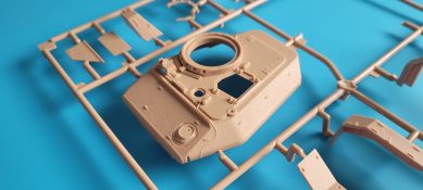 Die Wasserdichte Plane an der Blende der Hauptbewaffnung fehlt leider ebenfalls. Da diese doch zwingend erforderlich ist, muss der Modellbauer hier zur Eigeninitiative schreiten, oder sich ein entsprechendes Teil im Aftermarket besorgen (z.B. DEF oder AFV-Club für Centurion MK. III).