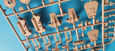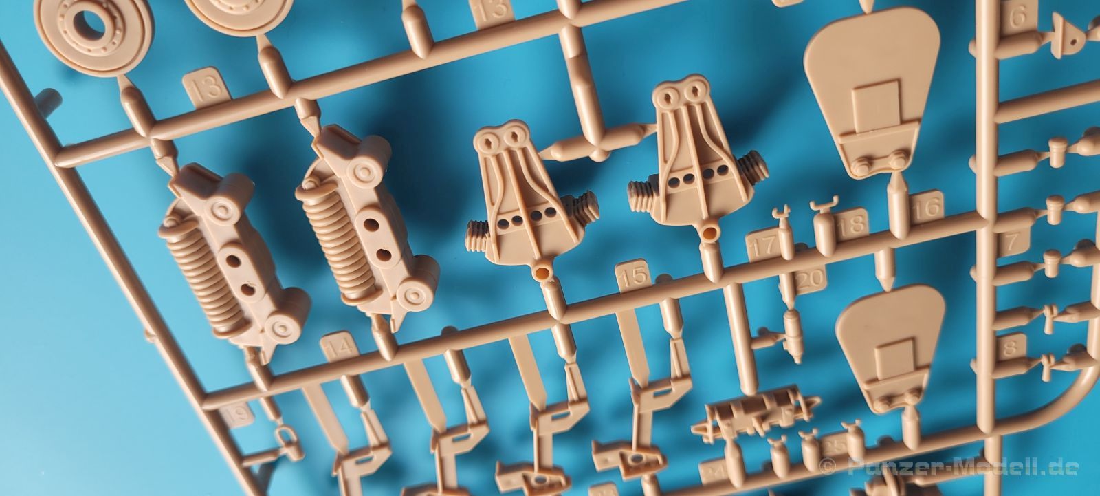 Beim Fahrwerk werden an den Rollenwagen entweder reine Plastikteile oder Metallfedern verwendet. Bei vorsichtigem Umgang mit Kleber bleiben diese bei, bei Nutzung der Metallfedern, beweglich - was sicher den Dioramenbauer erfreuen wird.