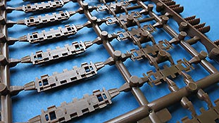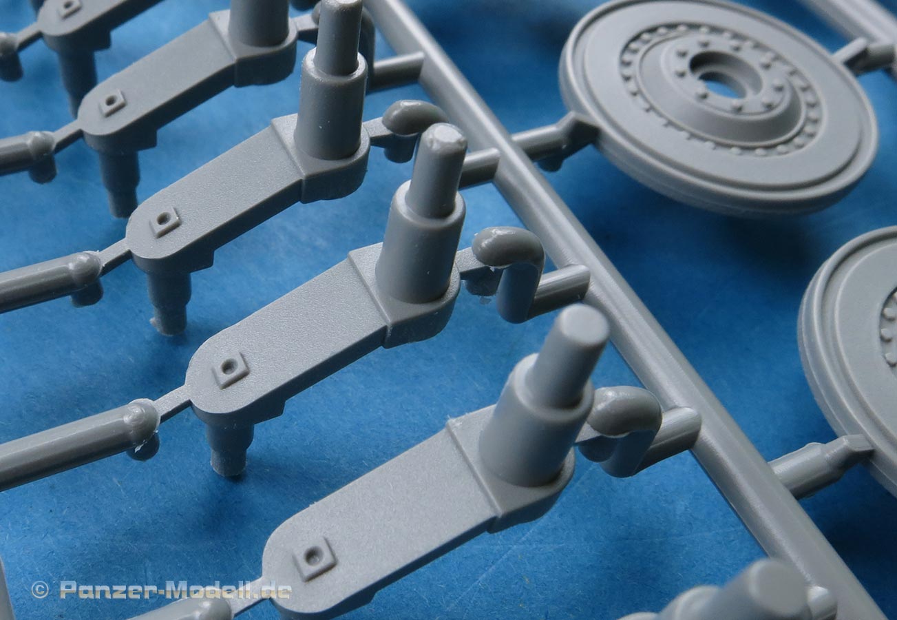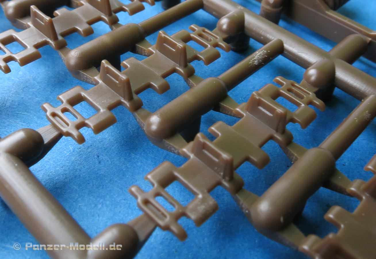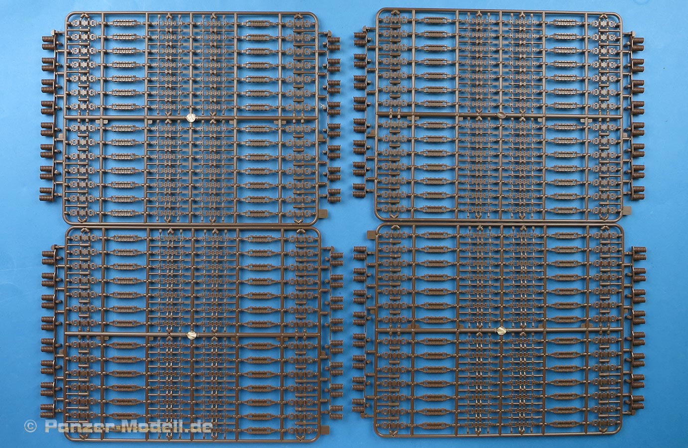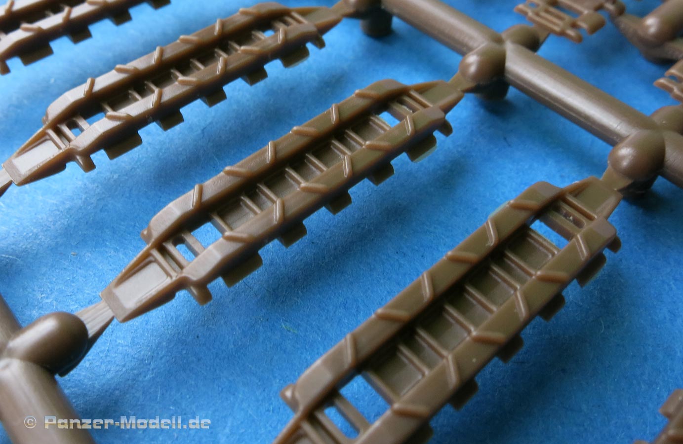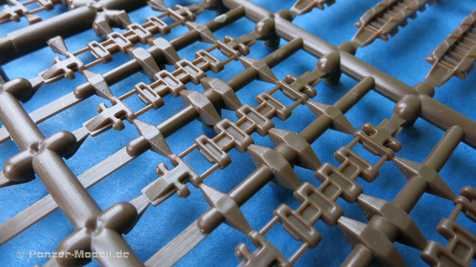 Ein weiterer Clou des Bausatzes ist sicher die Kette - scharfe, saubere Details, keinerlei Auswerferstellen, nur zwei Angüsse pro Hauptkettenglied, dafür aber sechs Angüsse pro Zwischenglied.