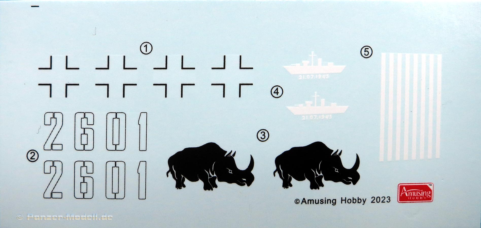 Es liegt ein Decalbogen zur Markierung von 2 Versionen bei