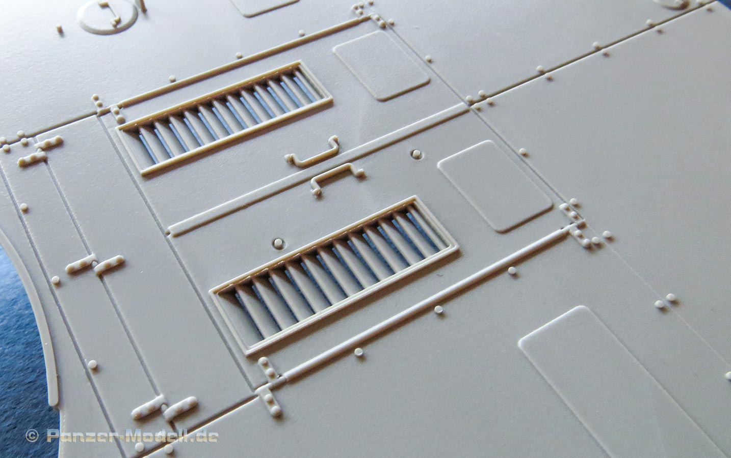 Ansonsten weist die Oberwanne schöne Details auf wie die Schweißnähte, Lüfterlamellen, geschlossene Luken, Griffe, Schraubenköpfe, etc.