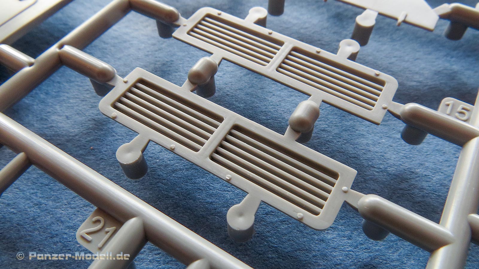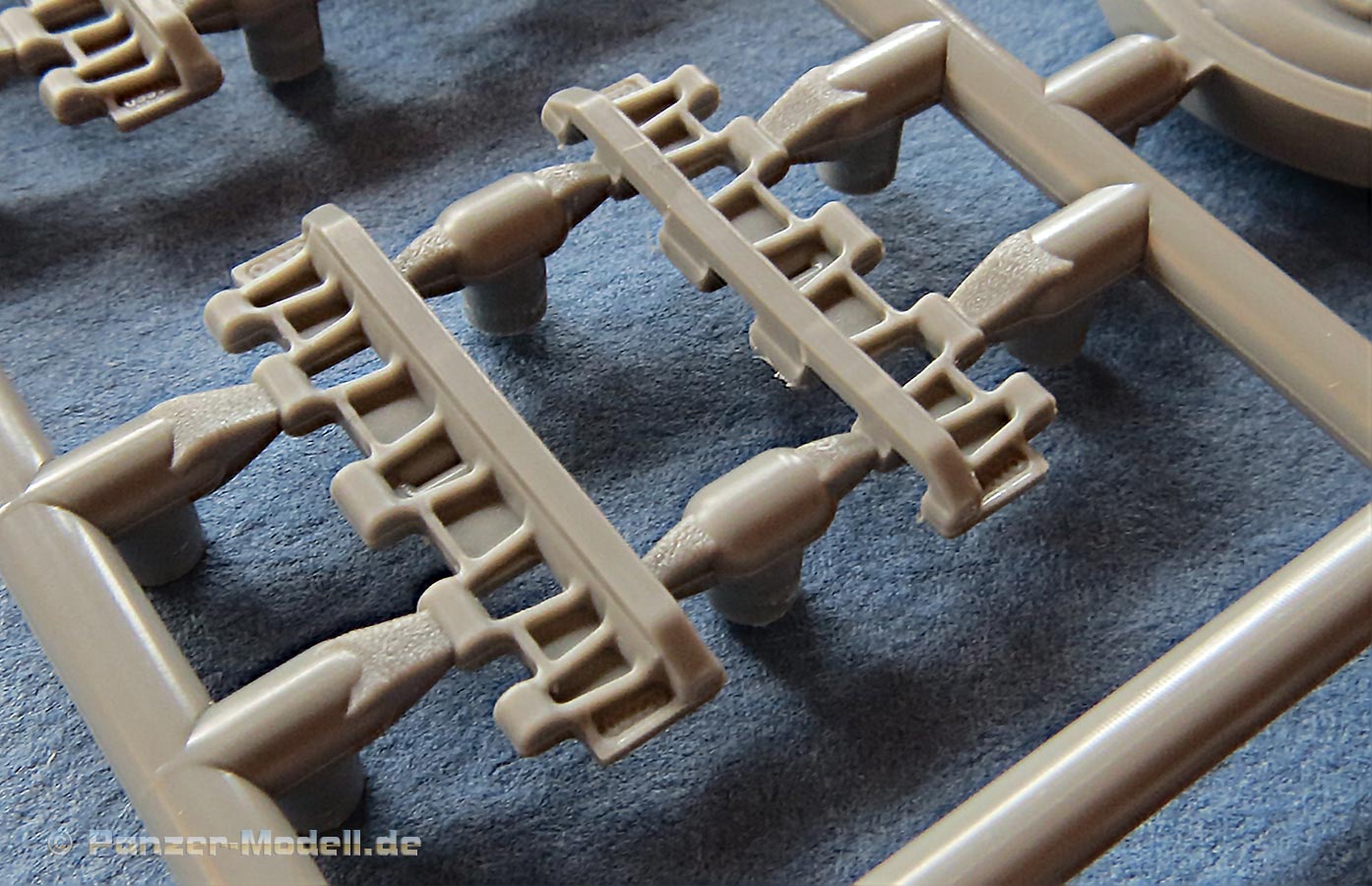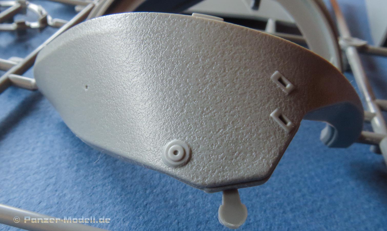 Die Detaillierung am gesamten Bausatz ist durch Bank wieder sehr gut. An den Spritzlingen ist augenscheinlich weder Fischhaut zu finden noch sind auffällige Auswerfermarken an später sichtbaren Stellen zu erkennen.