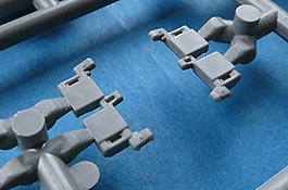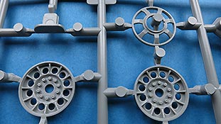 Was etwas merkwürdig erscheint, ist dass die Scheinwerfer hohl gespritzt sind, es aber keine Klarsichtteile gibt, die die Scheinwerfer dann mit Linsen abschließen. Nicht dass das für einen erfahrenen Modellbauer nicht lösbar wäre, aber Anfänger könnten hier vor einem echten Problem stehen.