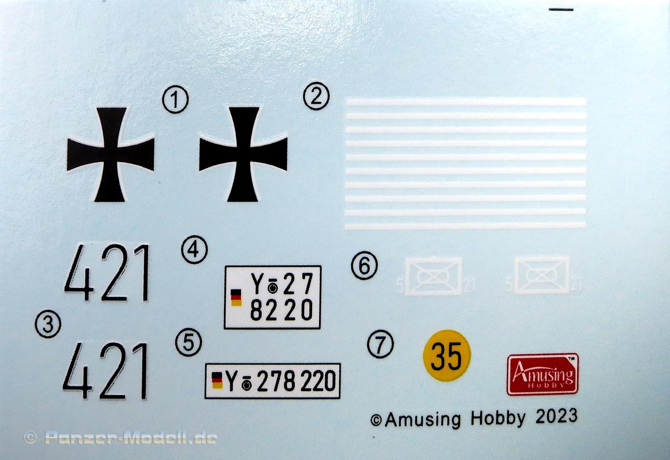 Mein Fazit: Ein hervorragender Bausatz mit guten Details und einer herovrragenden Darstellung dieses Prototypen eines erprobten aber nicht in Serie gebauten Spähpanzers der Bundeswehr der 60er Jahre. Bei den Markierungs und Bemalungsoptionen indes ist noch etwas Luft nach oben - gerade dass man einen Spähpanzer einem Gren Btl statt einem Aufkl.Btl. zuweist erscheint seltsam, zumal das Nummernschild von einem Kajapa des gleichen Bataillons stammt.