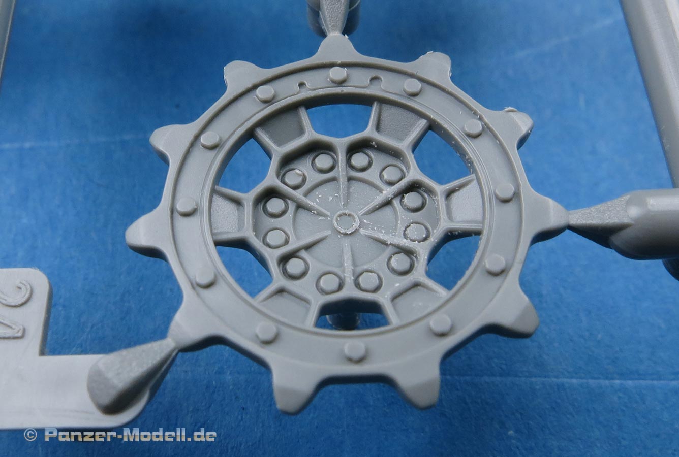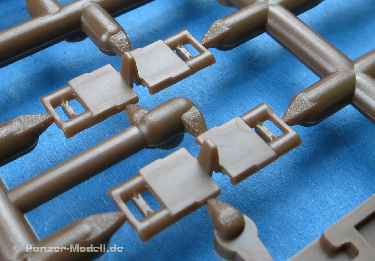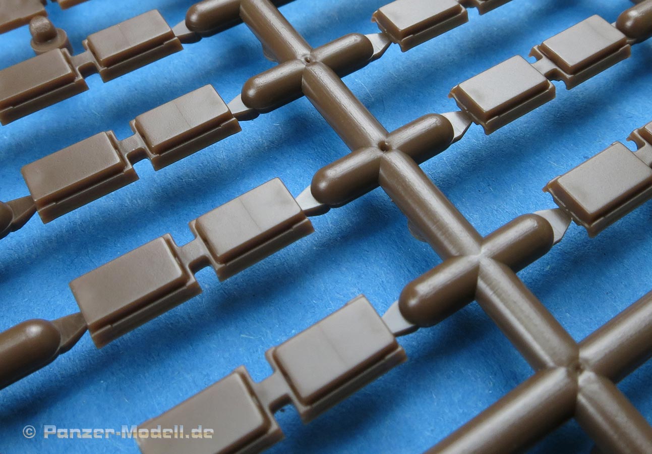 Die Kettenteile sehen sehr gut und sauber aus - die Oberteile haben eine schöne glatte Lauffläche für die Laufrollen und die Führungszähne sind fein und sauber dargestellt. Die Endverbinder weisen die korrekte Formung und Details auf.