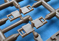 Die Kette ist als bewegliche Einzelgliedkette enthalten. Diese baut sich aus Ober- und Unterteil zusammen, zwischen die die Doppelbolzen mit Endverbindern beweglich eingelegt werden. Dafür ist an jedem der fünf Kettenspritzlinge je eine Bauhilfe für 5 Kettenglieder enthalten, die man miteinander verbinden kann und die den Bau der Ketten deutlich erleichtern.
