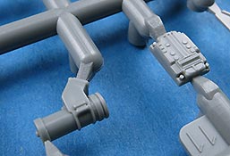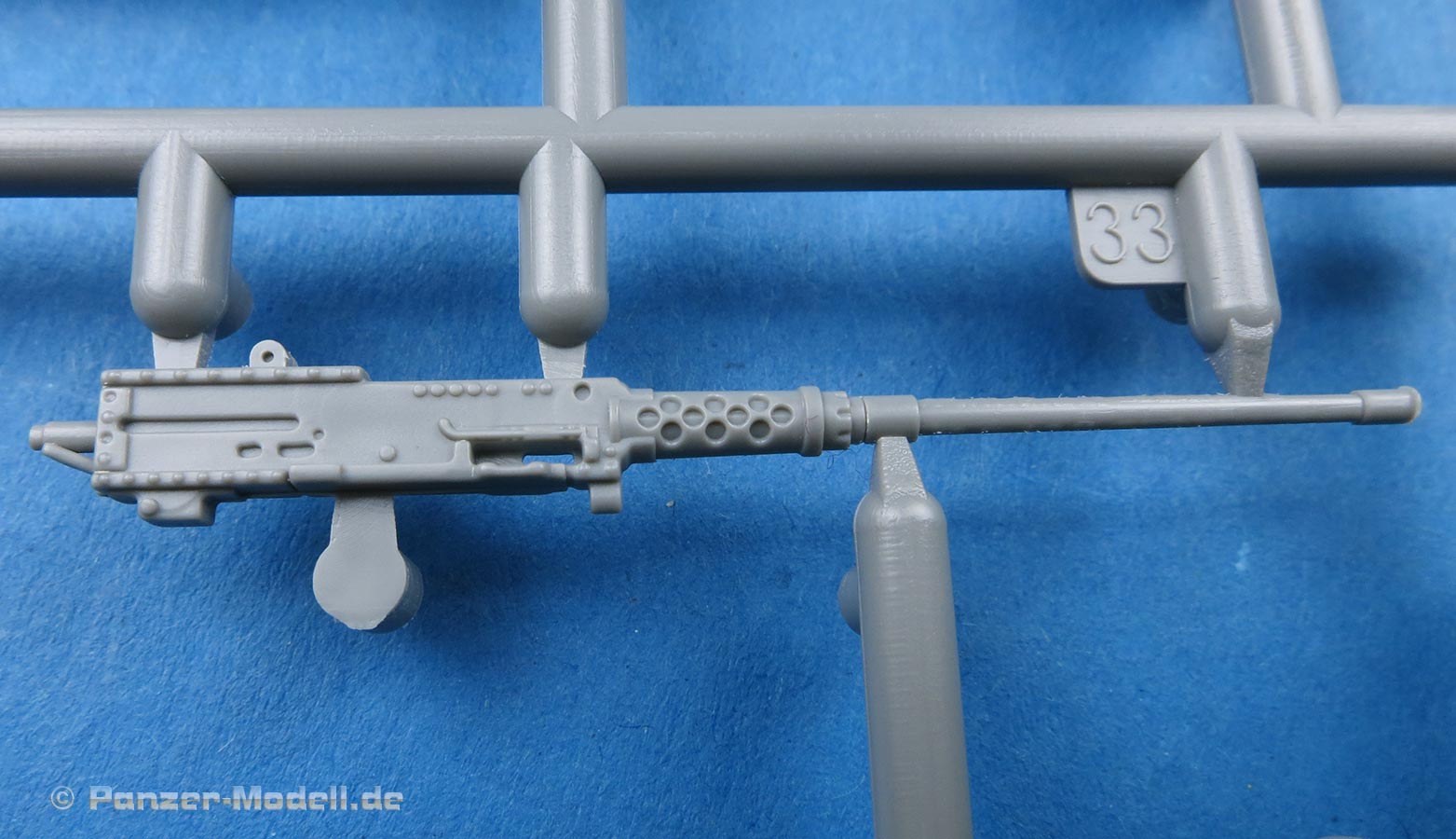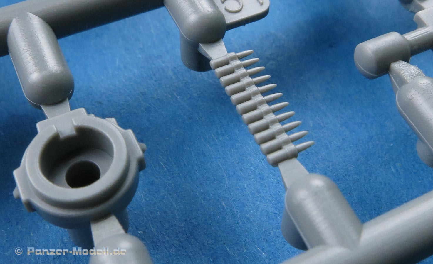 Es liegt sogar ein sehr feiner Strang eines Munitionsgurts in Spritzguss vor um zwischen Waffe und Munitionskiste angebracht zu werden.