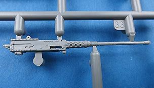 Die Waffenstation mit dem M2 Browning baut sich aus wenigen Teilen zusammen und bleibt in Höhe und Seite beweglich. Das Browning ist mit Waffenkörper und Rohr in einem Stück gespritzt und sieht recht angenehm für Spritzguss aus.