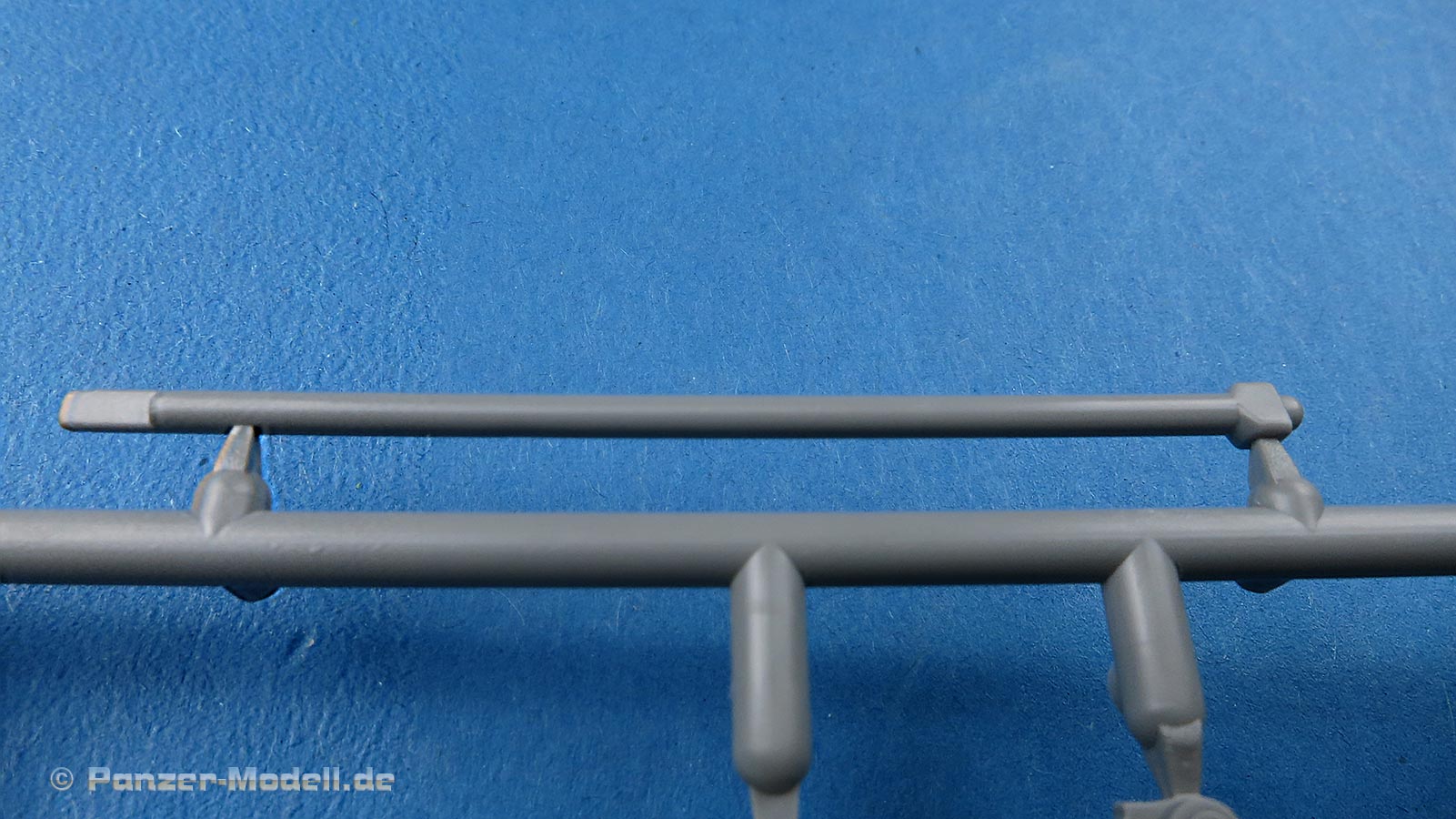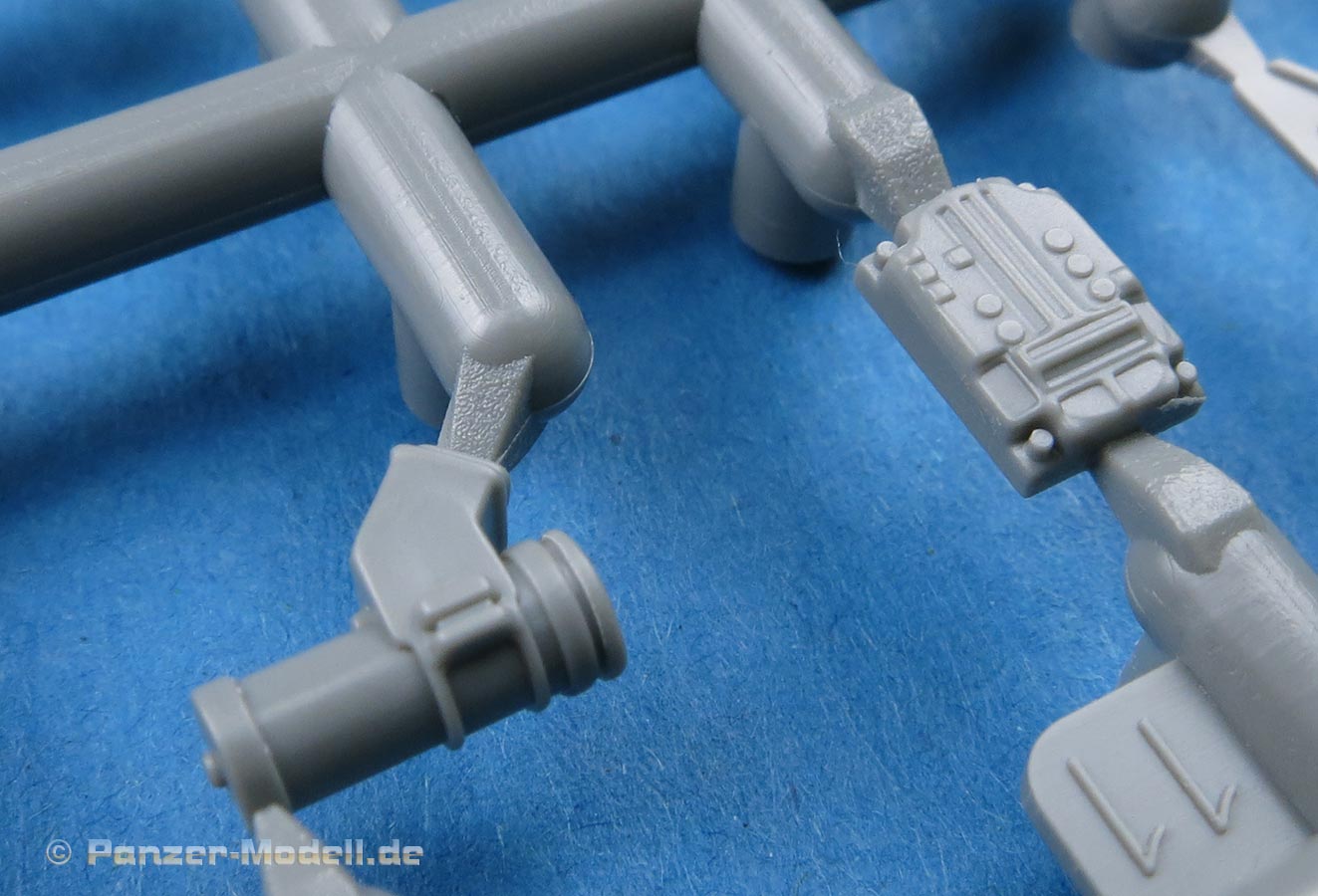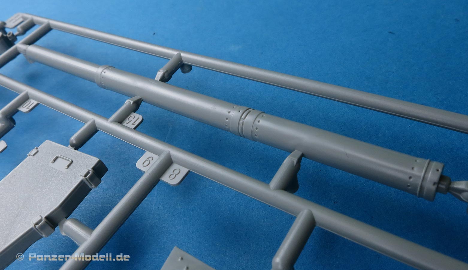 Das Kanonenrohr ist im Grunde einteilig - also keine Halbschalen, aber wird noch mit der Mündung und dem Rauchabsauger vervollständigt. Die einteilige Mündung ist mit Kollimator versehen, der Rauchabsauger ist auch einteilig - leider etwas zu glatt und ohne die markante Struktur. Ansonsten sind die Details am Rohr wirklich schön fein und scharf.