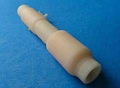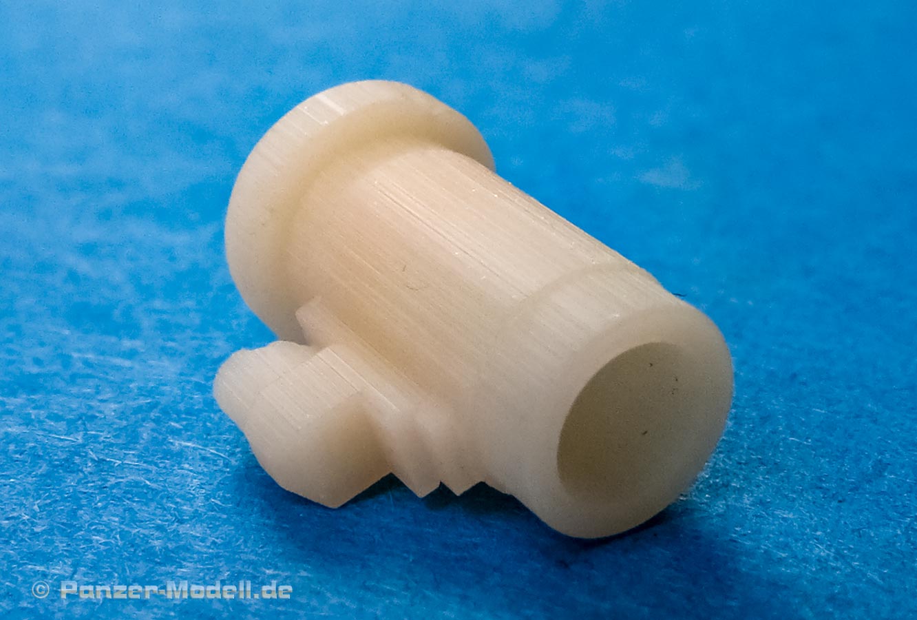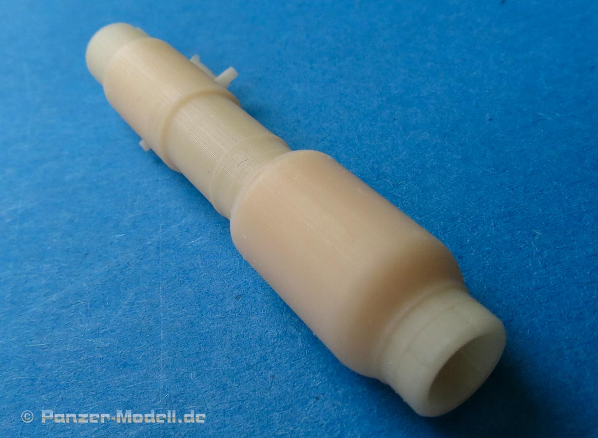 Wer einen Bausatz der ersten Ausführung kauft, bekommt hier zusätzlich ein astrein sauber gedrehtes Metallrohr mit Mündung, sowie der Rauchabsaugen und Rohrbasis aus 3D Druckteilen. Diese sind ebenfalls sehr sauber und detailliert gedruckt. Leider ist auch hier die markante Gewebestruktur des Rauchabsaugers nicht dargestellt.