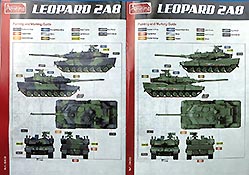 Am Ende der Bauanleitung sind zwei farbig gedruckte Seiten mit Farbprofilen zu Bemalung und Markierung von zwei Versionen, alle ohne Angaben von Ort, Zeit, Einheit oder Land: