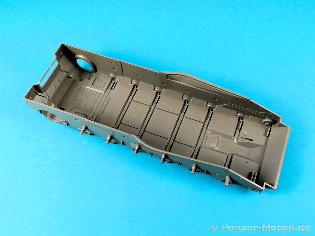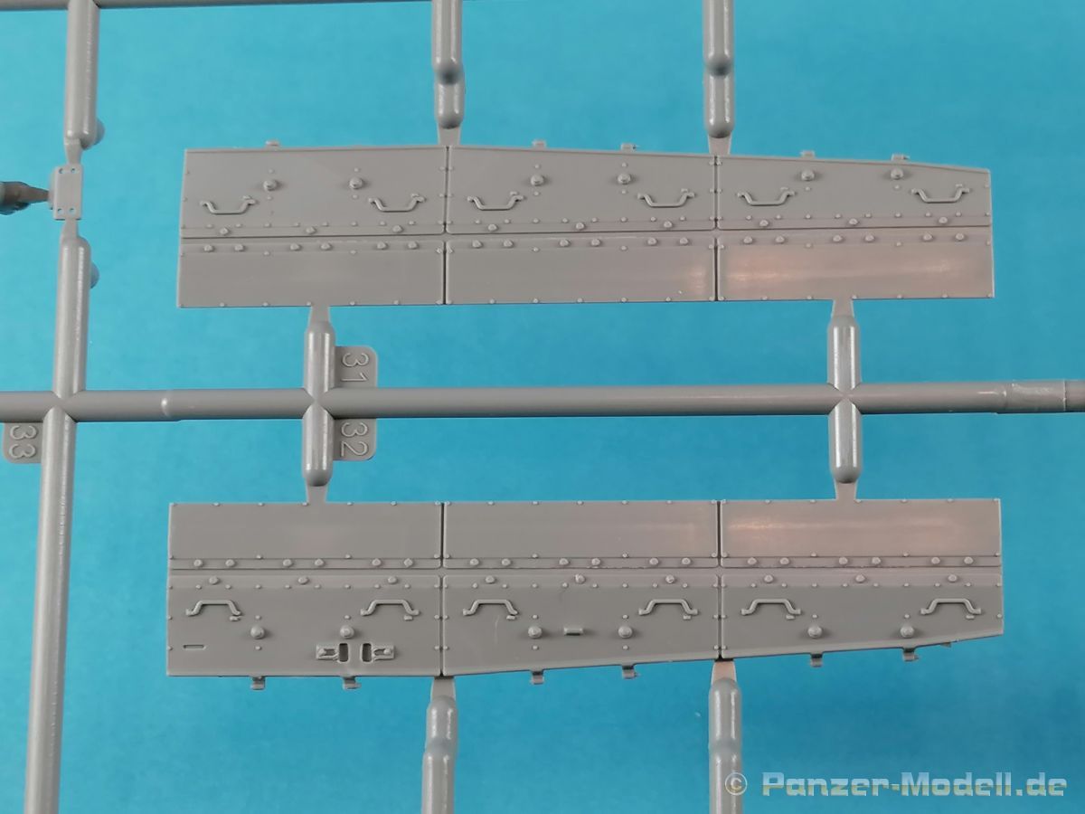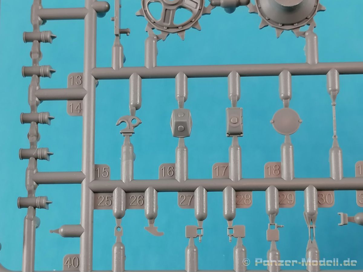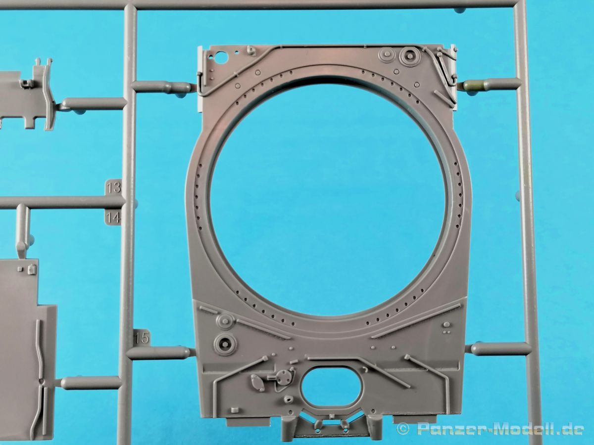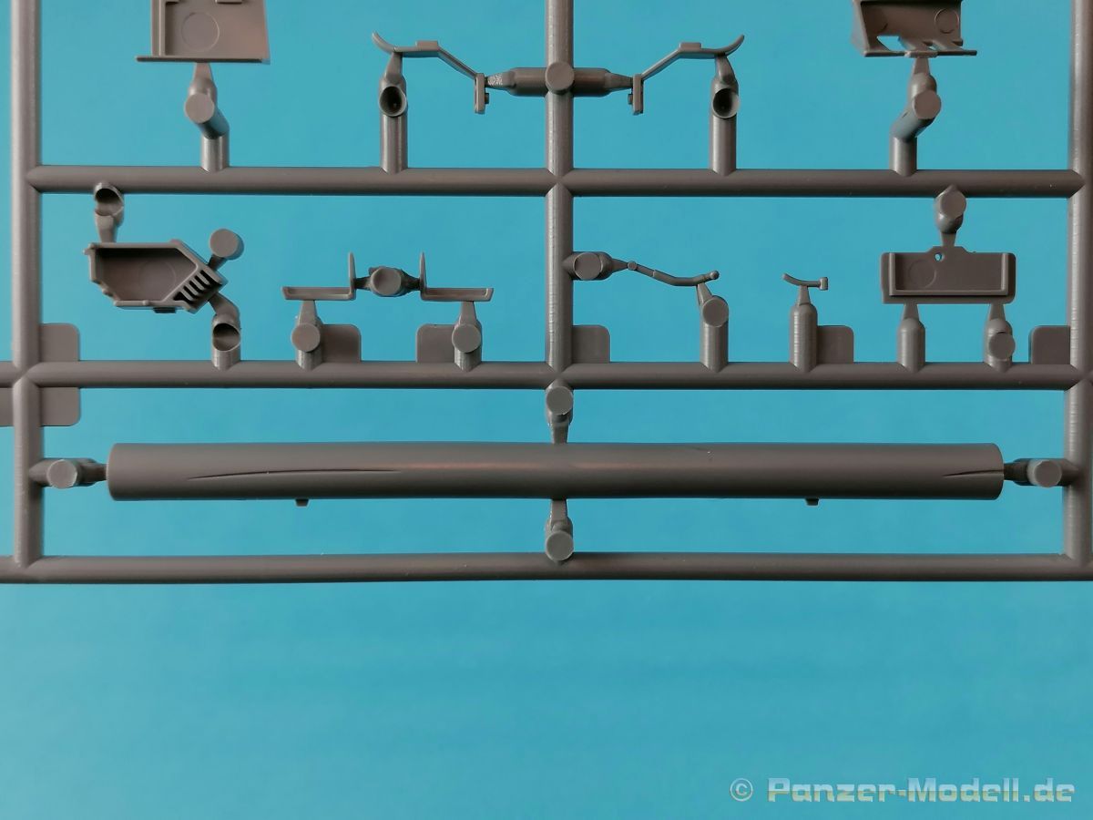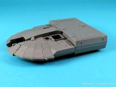 Das Objekt 640, besser bekannt als “Black Eagle” war eines der Projekte der Russen in den frühen 1990ern. Die Entwicklung des Prototypen erfolgte in Omsk. Viele Neuerungen flossen in das Projekt ein, die aber erst später im “Armata” ihren Niederschlag finden. Tatsächlich wurde dieser Panzer aber nie vollständig gebaut. Ein Vorführmodell, bestehend aus einer T-80U-Wanne und einem Objekt-480-Turm wurden der Öffenlichkeit 1997 vorgestellt. Aus finanziellen Gründen und Desinteresse des Verteidigungsministeriums in Moskau an diesem extrem teuren Projekt wurde die weitere Entwicklung abgebrochen. Erfahrungswerte und Erkenntnisse flossen aber in die Modernisierung anderer konventioneller Kampfpanzer ein. Amusing Hobby bleibt sich seiner Linie treu und liefert mit dem vorliegenden Kit erneut einen Prototypen, um nicht zu sagen ein weiteres “What If” Projekt! Was findet sich im Bausatzkarton (37 x 24 x 6,5 cm) mit Stülpdeckel. Zum Vorschein kommen neun Spritzlinge in Grau, eine Panzerunterwanne, ein Turmunter- und ein Oberteil. In zwei Beuteln, gut verpackt gibt es einem braunen Ton gehalten die Teile für die Ketten. Klarsichtteile, Druckteile und eine kleine PE-Platine runden alles ab. Beim Betrachten der Bauteile fällt schon auf den ersten Blick die saubere Verarbeitung auf. Formenversatz und Flash sucht man vergebens, also Spritzguß auf hohem Niveau. Auswerfermarken lediglich in Bereichen die sich später dem Auge des Betrachters entziehen. Alles ist sehr filigran, scharf und detailreich umgesetzt. Ob es sich um Bolzen, Nieten und Schweißnähte handelt; alles gefällt. Oberflächendetails fehlen ebensowenig. Allerdings erscheint mir die Oberfläche des Panzers etwas zu glatt, aber das ist nicht unbedingt ein Manko. Abhilfe werden versierte Modellbauer sicherlich schaffen. In 17 Baustufen führt uns die Bauanleitung im DIN A4 Hochformat durch den Bau des Panzers. Den üblichen mehrsprachigen Hinweisen und Piktogrammen auf der ersten Seite folgt auf Seite zwei die übliche Übersicht der Bauteile. Die Zeichnungen sind gut lesbar und nicht mit Teilen überladen. Fragen dürften sich keine ergeben. Kleine Bauuntergruppen weisen auf Besonderheiten hin. Klassisch beginnt der Bau des Fahrzeugs dann auf Seite drei mit der Unterwanne. In vier Baustufen dreht sich alles um die Konstruktion des Laufwerks. Durch die Lage der Drehstäbe sollte auch die Beweglichkeit der Laufrollen und der Ketten gegeben sein, also auch für Dios mit unebenen Untergrund. Der fünfte Bauabschnitt beschäftigt sich mit der Montage der Laufrollen und dem Bau der Kette. Laut Anleitung werden die Kettenglieder nur zusammengeklickt und abschließend mit den Führungszähnen vervollständigt. Dadurch sollten die Kettentrümmer auch beweglich bleiben. Wahrscheinlich das aufwändigste Konstrukt an dem Panzer. Bevor es ab Baustufe acht an die Konstruktion der Oberwanne geht wird die Unterwanne mit diversen Anbauteilen komplettiert. Auch der übliche “Baumstamm” darf nicht fehlen… Dank der wirklich gelungenen Zeichnungen läuft der weitere Zusammenbau ohne Probleme. Die Schutzbleche der Ketten, die mit Treibstofftanks etc. bestückt werden und die Schürzen machen ebenfalls in Summe einen sehr guten Eindruck. Das für russische Panzer typische Erscheinungsbild ist spätestens jetzt klar erkennbar. Im Heckbereich werden weitere Anbauteile angebracht und zudem Reservetanks, die im Slide-Mould Verfahren hergestellt sind und die mit feinen Beschriftungen versehen sind. Clever gedruckte Lampen und deren Schutzbügel erleichtern den Bau. Fehlt nur noch der Turm. Dieser ist grob zweiteilig umgesetzt und besticht ebenfalls durch viele Details. Zwischen die Turmhälften wird noch die Befestigung für die Kanone eingebracht die für die Höhenrichtung zuständig ist. Leider ist das Rohr zweiteilig, aber eine Passprobe zeigte eine verblüffende Genauigkeit der beiden Hälften. Eine Nacharbeit dürfte sich also in Grenzen halten. Am Turm finden Optiken, weitere Anbauteile usw. ebenfalls ihren Platz. Auch kommen viele Klarteile in diesem Bereich zum Einsatz. Es liegt in der Natur der Sache das nur ein Bemalungsvorschlag vorhanden ist. Allerdings macht sich bei der Farbwahl etwas Skepsis breit. Recherche könnte weiterhelfen. Die Farben sind auf Ammo by MIG ausgerichtet. Decals sind für dieses Fahrzeug keine vorgesehen. Die wenigen PEs (drei Stück) sind erstklassig als Lüftergitter umgesetzt stellen niemand vor Probleme. Amusing Hobby hat es erneut geschafft ein interessantes Fahrzeug zu realisieren. Ohne Details zu verlieren und in eine Kleinteiligkeit abzudriften liegt uns ein solider Bausatz vor, der auch von Anfängern durchaus bewältigt werden kann. Die sinnvolle und relative überschaubare (subjektiv) Teileanzahl dürften zu einem relativ schnellen Ergebnis führen. Ein tolles Modell, nicht nur für “What If” Fans. Sehr gute Qualität und Ausstattung zu einem noch guten Preis. Beide Daumen hoch.