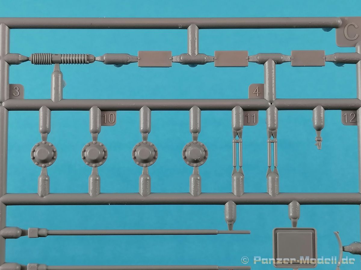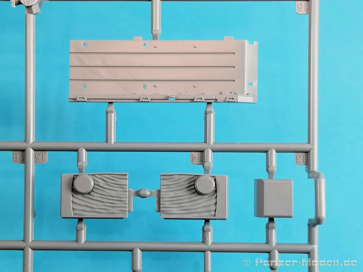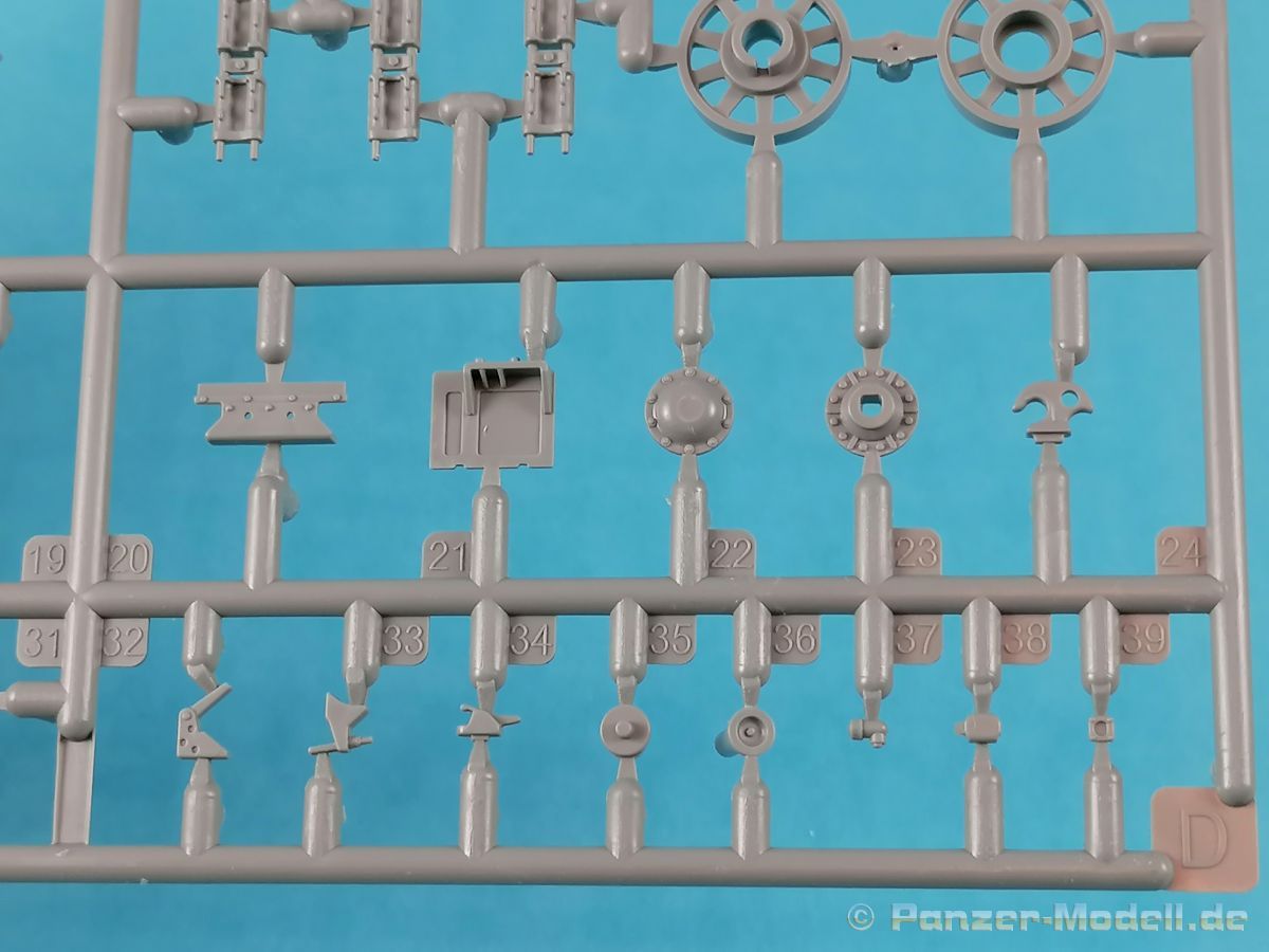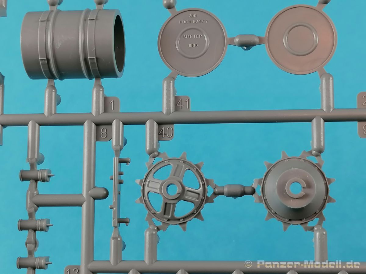 Das Objekt 640, besser bekannt als “Black Eagle” war eines der Projekte der Russen in den frühen 1990ern. Die Entwicklung des Prototypen erfolgte in Omsk. Viele Neuerungen flossen in das Projekt ein, die aber erst später im “Armata” ihren Niederschlag finden. Tatsächlich wurde dieser Panzer aber nie vollständig gebaut. Ein Vorführmodell, bestehend aus einer T-80U-Wanne und einem Objekt-480-Turm wurden der Öffenlichkeit 1997 vorgestellt. Aus finanziellen Gründen und Desinteresse des Verteidigungsministeriums in Moskau an diesem extrem teuren Projekt wurde die weitere Entwicklung abgebrochen. Erfahrungswerte und Erkenntnisse flossen aber in die Modernisierung anderer konventioneller Kampfpanzer ein. Amusing Hobby bleibt sich seiner Linie treu und liefert mit dem vorliegenden Kit erneut einen Prototypen, um nicht zu sagen ein weiteres “What If” Projekt! Was findet sich im Bausatzkarton (37 x 24 x 6,5 cm) mit Stülpdeckel. Zum Vorschein kommen neun Spritzlinge in Grau, eine Panzerunterwanne, ein Turmunter- und ein Oberteil. In zwei Beuteln, gut verpackt gibt es einem braunen Ton gehalten die Teile für die Ketten. Klarsichtteile, Druckteile und eine kleine PE-Platine runden alles ab. Beim Betrachten der Bauteile fällt schon auf den ersten Blick die saubere Verarbeitung auf. Formenversatz und Flash sucht man vergebens, also Spritzguß auf hohem Niveau. Auswerfermarken lediglich in Bereichen die sich später dem Auge des Betrachters entziehen. Alles ist sehr filigran, scharf und detailreich umgesetzt. Ob es sich um Bolzen, Nieten und Schweißnähte handelt; alles gefällt. Oberflächendetails fehlen ebensowenig. Allerdings erscheint mir die Oberfläche des Panzers etwas zu glatt, aber das ist nicht unbedingt ein Manko. Abhilfe werden versierte Modellbauer sicherlich schaffen. In 17 Baustufen führt uns die Bauanleitung im DIN A4 Hochformat durch den Bau des Panzers. Den üblichen mehrsprachigen Hinweisen und Piktogrammen auf der ersten Seite folgt auf Seite zwei die übliche Übersicht der Bauteile. Die Zeichnungen sind gut lesbar und nicht mit Teilen überladen. Fragen dürften sich keine ergeben. Kleine Bauuntergruppen weisen auf Besonderheiten hin. Klassisch beginnt der Bau des Fahrzeugs dann auf Seite drei mit der Unterwanne. In vier Baustufen dreht sich alles um die Konstruktion des Laufwerks. Durch die Lage der Drehstäbe sollte auch die Beweglichkeit der Laufrollen und der Ketten gegeben sein, also auch für Dios mit unebenen Untergrund. Der fünfte Bauabschnitt beschäftigt sich mit der Montage der Laufrollen und dem Bau der Kette. Laut Anleitung werden die Kettenglieder nur zusammengeklickt und abschließend mit den Führungszähnen vervollständigt. Dadurch sollten die Kettentrümmer auch beweglich bleiben. Wahrscheinlich das aufwändigste Konstrukt an dem Panzer. Bevor es ab Baustufe acht an die Konstruktion der Oberwanne geht wird die Unterwanne mit diversen Anbauteilen komplettiert. Auch der übliche “Baumstamm” darf nicht fehlen… Dank der wirklich gelungenen Zeichnungen läuft der weitere Zusammenbau ohne Probleme. Die Schutzbleche der Ketten, die mit Treibstofftanks etc. bestückt werden und die Schürzen machen ebenfalls in Summe einen sehr guten Eindruck. Das für russische Panzer typische Erscheinungsbild ist spätestens jetzt klar erkennbar. Im Heckbereich werden weitere Anbauteile angebracht und zudem Reservetanks, die im Slide-Mould Verfahren hergestellt sind und die mit feinen Beschriftungen versehen sind. Clever gedruckte Lampen und deren Schutzbügel erleichtern den Bau. Fehlt nur noch der Turm. Dieser ist grob zweiteilig umgesetzt und besticht ebenfalls durch viele Details. Zwischen die Turmhälften wird noch die Befestigung für die Kanone eingebracht die für die Höhenrichtung zuständig ist. Leider ist das Rohr zweiteilig, aber eine Passprobe zeigte eine verblüffende Genauigkeit der beiden Hälften. Eine Nacharbeit dürfte sich also in Grenzen halten. Am Turm finden Optiken, weitere Anbauteile usw. ebenfalls ihren Platz. Auch kommen viele Klarteile in diesem Bereich zum Einsatz. Es liegt in der Natur der Sache das nur ein Bemalungsvorschlag vorhanden ist. Allerdings macht sich bei der Farbwahl etwas Skepsis breit. Recherche könnte weiterhelfen. Die Farben sind auf Ammo by MIG ausgerichtet. Decals sind für dieses Fahrzeug keine vorgesehen. Die wenigen PEs (drei Stück) sind erstklassig als Lüftergitter umgesetzt stellen niemand vor Probleme. Amusing Hobby hat es erneut geschafft ein interessantes Fahrzeug zu realisieren. Ohne Details zu verlieren und in eine Kleinteiligkeit abzudriften liegt uns ein solider Bausatz vor, der auch von Anfängern durchaus bewältigt werden kann. Die sinnvolle und relative überschaubare (subjektiv) Teileanzahl dürften zu einem relativ schnellen Ergebnis führen. Ein tolles Modell, nicht nur für “What If” Fans. Sehr gute Qualität und Ausstattung zu einem noch guten Preis. Beide Daumen hoch.