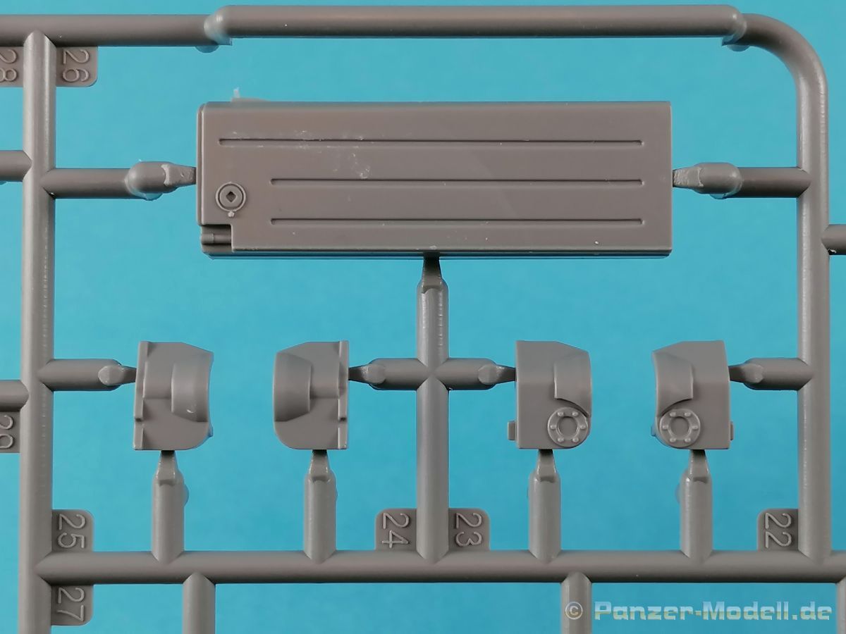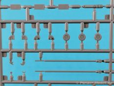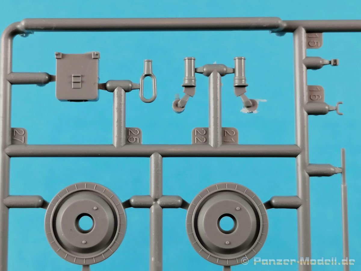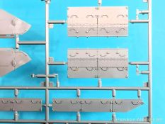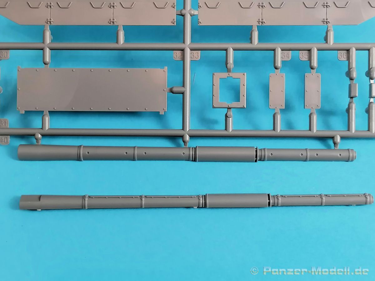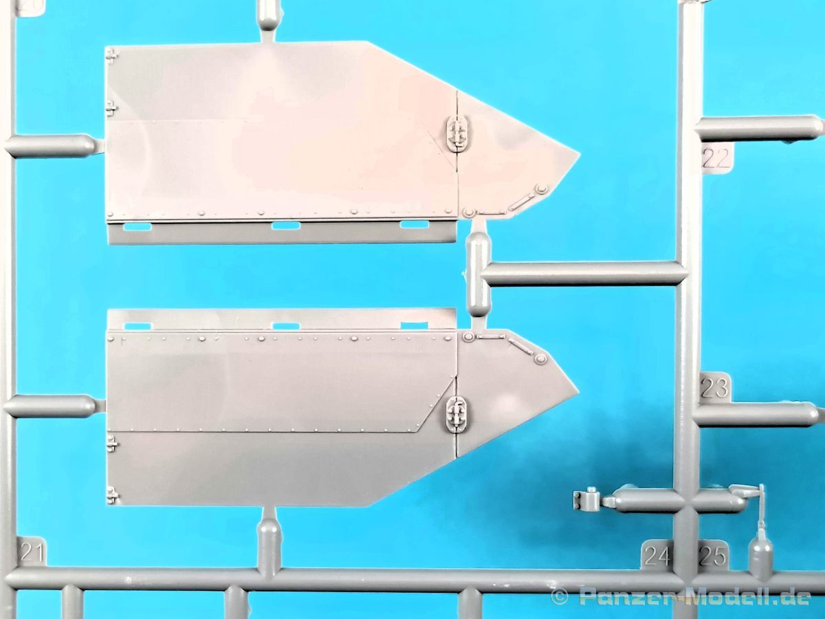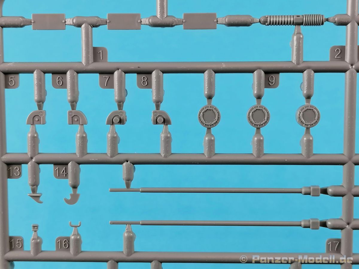 Das Objekt 640, besser bekannt als “Black Eagle” war eines der Projekte der Russen in den frühen 1990ern. Die Entwicklung des Prototypen erfolgte in Omsk. Viele Neuerungen flossen in das Projekt ein, die aber erst später im “Armata” ihren Niederschlag finden. Tatsächlich wurde dieser Panzer aber nie vollständig gebaut. Ein Vorführmodell, bestehend aus einer T-80U-Wanne und einem Objekt-480-Turm wurden der Öffenlichkeit 1997 vorgestellt. Aus finanziellen Gründen und Desinteresse des Verteidigungsministeriums in Moskau an diesem extrem teuren Projekt wurde die weitere Entwicklung abgebrochen. Erfahrungswerte und Erkenntnisse flossen aber in die Modernisierung anderer konventioneller Kampfpanzer ein. Amusing Hobby bleibt sich seiner Linie treu und liefert mit dem vorliegenden Kit erneut einen Prototypen, um nicht zu sagen ein weiteres “What If” Projekt! Was findet sich im Bausatzkarton (37 x 24 x 6,5 cm) mit Stülpdeckel. Zum Vorschein kommen neun Spritzlinge in Grau, eine Panzerunterwanne, ein Turmunter- und ein Oberteil. In zwei Beuteln, gut verpackt gibt es einem braunen Ton gehalten die Teile für die Ketten. Klarsichtteile, Druckteile und eine kleine PE-Platine runden alles ab. Beim Betrachten der Bauteile fällt schon auf den ersten Blick die saubere Verarbeitung auf. Formenversatz und Flash sucht man vergebens, also Spritzguß auf hohem Niveau. Auswerfermarken lediglich in Bereichen die sich später dem Auge des Betrachters entziehen. Alles ist sehr filigran, scharf und detailreich umgesetzt. Ob es sich um Bolzen, Nieten und Schweißnähte handelt; alles gefällt. Oberflächendetails fehlen ebensowenig. Allerdings erscheint mir die Oberfläche des Panzers etwas zu glatt, aber das ist nicht unbedingt ein Manko. Abhilfe werden versierte Modellbauer sicherlich schaffen. In 17 Baustufen führt uns die Bauanleitung im DIN A4 Hochformat durch den Bau des Panzers. Den üblichen mehrsprachigen Hinweisen und Piktogrammen auf der ersten Seite folgt auf Seite zwei die übliche Übersicht der Bauteile. Die Zeichnungen sind gut lesbar und nicht mit Teilen überladen. Fragen dürften sich keine ergeben. Kleine Bauuntergruppen weisen auf Besonderheiten hin. Klassisch beginnt der Bau des Fahrzeugs dann auf Seite drei mit der Unterwanne. In vier Baustufen dreht sich alles um die Konstruktion des Laufwerks. Durch die Lage der Drehstäbe sollte auch die Beweglichkeit der Laufrollen und der Ketten gegeben sein, also auch für Dios mit unebenen Untergrund. Der fünfte Bauabschnitt beschäftigt sich mit der Montage der Laufrollen und dem Bau der Kette. Laut Anleitung werden die Kettenglieder nur zusammengeklickt und abschließend mit den Führungszähnen vervollständigt. Dadurch sollten die Kettentrümmer auch beweglich bleiben. Wahrscheinlich das aufwändigste Konstrukt an dem Panzer. Bevor es ab Baustufe acht an die Konstruktion der Oberwanne geht wird die Unterwanne mit diversen Anbauteilen komplettiert. Auch der übliche “Baumstamm” darf nicht fehlen… Dank der wirklich gelungenen Zeichnungen läuft der weitere Zusammenbau ohne Probleme. Die Schutzbleche der Ketten, die mit Treibstofftanks etc. bestückt werden und die Schürzen machen ebenfalls in Summe einen sehr guten Eindruck. Das für russische Panzer typische Erscheinungsbild ist spätestens jetzt klar erkennbar. Im Heckbereich werden weitere Anbauteile angebracht und zudem Reservetanks, die im Slide-Mould Verfahren hergestellt sind und die mit feinen Beschriftungen versehen sind. Clever gedruckte Lampen und deren Schutzbügel erleichtern den Bau. Fehlt nur noch der Turm. Dieser ist grob zweiteilig umgesetzt und besticht ebenfalls durch viele Details. Zwischen die Turmhälften wird noch die Befestigung für die Kanone eingebracht die für die Höhenrichtung zuständig ist. Leider ist das Rohr zweiteilig, aber eine Passprobe zeigte eine verblüffende Genauigkeit der beiden Hälften. Eine Nacharbeit dürfte sich also in Grenzen halten. Am Turm finden Optiken, weitere Anbauteile usw. ebenfalls ihren Platz. Auch kommen viele Klarteile in diesem Bereich zum Einsatz. Es liegt in der Natur der Sache das nur ein Bemalungsvorschlag vorhanden ist. Allerdings macht sich bei der Farbwahl etwas Skepsis breit. Recherche könnte weiterhelfen. Die Farben sind auf Ammo by MIG ausgerichtet. Decals sind für dieses Fahrzeug keine vorgesehen. Die wenigen PEs (drei Stück) sind erstklassig als Lüftergitter umgesetzt stellen niemand vor Probleme. Amusing Hobby hat es erneut geschafft ein interessantes Fahrzeug zu realisieren. Ohne Details zu verlieren und in eine Kleinteiligkeit abzudriften liegt uns ein solider Bausatz vor, der auch von Anfängern durchaus bewältigt werden kann. Die sinnvolle und relative überschaubare (subjektiv) Teileanzahl dürften zu einem relativ schnellen Ergebnis führen. Ein tolles Modell, nicht nur für “What If” Fans. Sehr gute Qualität und Ausstattung zu einem noch guten Preis. Beide Daumen hoch.