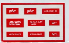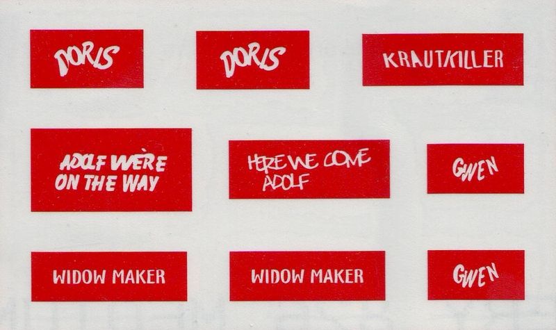 Die 0,05mm dünne, reissfeste Folie enthält 9 verschiedene Kosenamen oder Sprüche der Besatzung, die man an diversen Shermans oder Derivaten finden konnte und so mit diesen Schablonen einfach und schnell überall aufbringen kann.