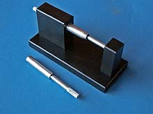 Für etwas größere Bauteile/Räder gibt es einen zweiten Spannstift mit größerem Durchmesser um diese exakt und sicher zu halten.