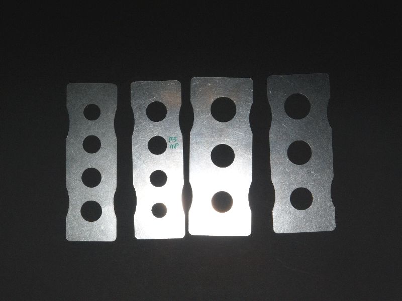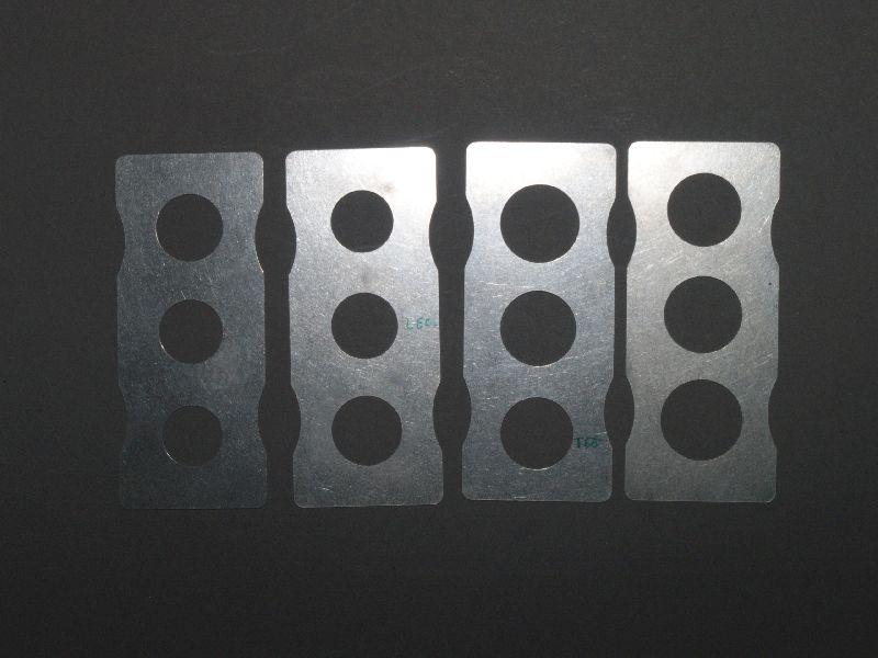Hierbei dürfte folgendes Vorgehen in meinen Augen recht sinnvoll sein. Zunächst werden die Laufrollen mit der Airbrush komplett in der entsrpechenden Farbe des Gummis lackiert. Nachdem die Laufrollen durchgetrocknet sind, werden diese in die Spannvorrichtung eingespannt. Nun kommen die beiliegenden Schablonen aus Edelstahl zum Einsatz. Diese sind ebenfalls sehr gut verarbeitet. Scharfe Kanten sucht man vergebens. Die Schablonen liegen in diversen Durchmessern mit einer Schrittweite von jeweils 1mm bei.