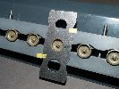 Diese Vorrichtung ist solide verarbeitet. Sie besteht aus einem Grundteil aus beschichteten Metall und einem dort montierten Kunstoffblock. In diesen werden bis zu sechs Laufrollen eingelegt, die durch das passende Kunstoffgegenstück festgehalten werden. Dieses Trum hat eine Breite von fast 30 cm und ist mit gut einem Kilo Gewicht auch kein Leichtgewicht. Somit ist ein sicherer Stand und sauberes Arbeiten gewährleistet. Die einzelnen Komponenten machen auf mich einen sehr hochwertigen Eindruck. Als 'Schmankerl' ist an der rechten Seite noch eine Ablage für die Airbrush angebracht, so daß man diese bequem ablegen kann, um z.B. die Laufrollen zu wechseln. Mit Hilfe dieses Werkzeuges können bis zu sechs Laufrollen recht einfach lackiert werden.