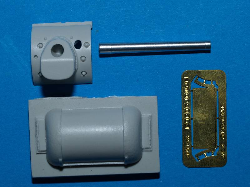 Neben dem gedrehten Alu-Rohr beinhaltet das Set eine sauber gegossene Geschützblende und die Panzerplatte aus Resin. Ferner gibt es noch eine dünne Abdeckplatte für die Geschützblende aus Ätzteilen. Die Qualität der einzelnen Teile ist sehr gut, das Rohr flutscht einfach in die Blende. Hervorzuheben sind bei dem Rohr die schön wiedergegeben Züge, sowie die schönen Schweißnähte bei der Kanonenblende. Ein schönes Set, um einen KW-1, z.B. von Trumpeter aufzuwerten, derPreis von ca. 10 Euro geht ebenfalls in Ordnung.