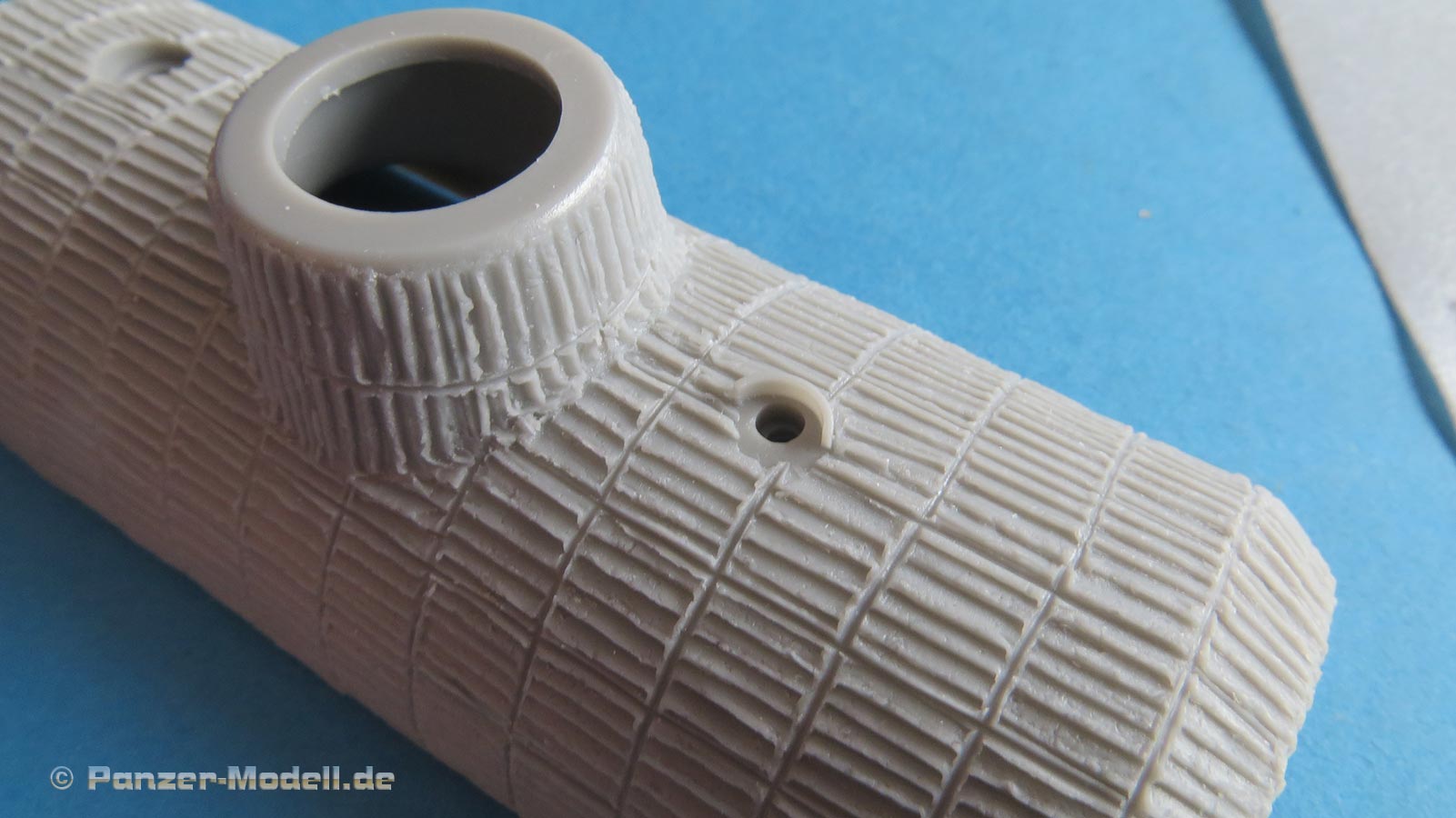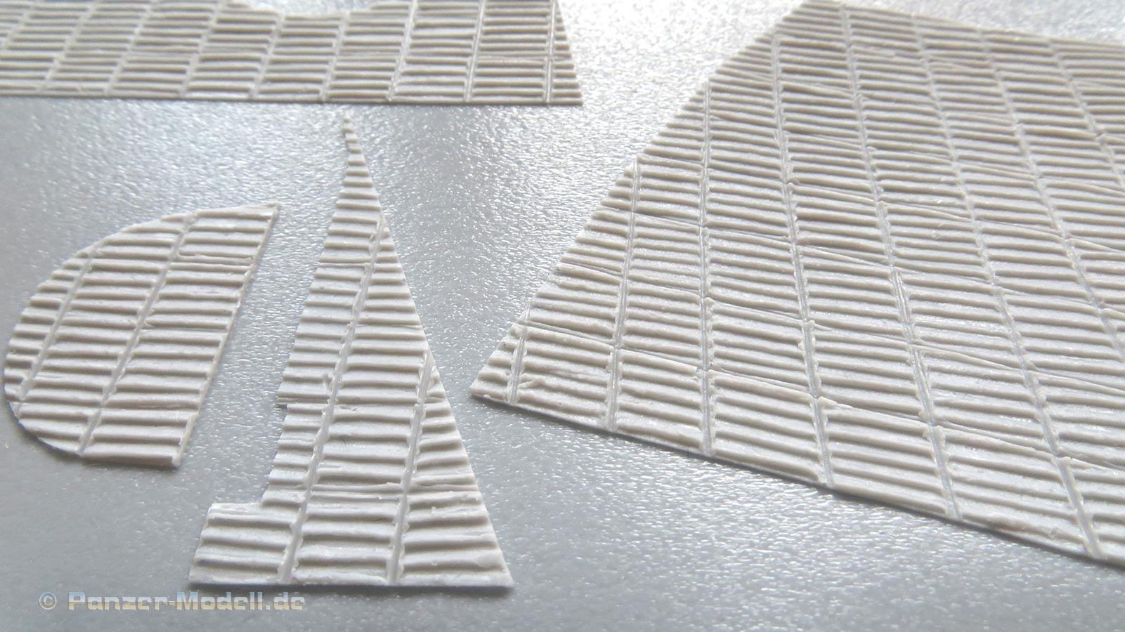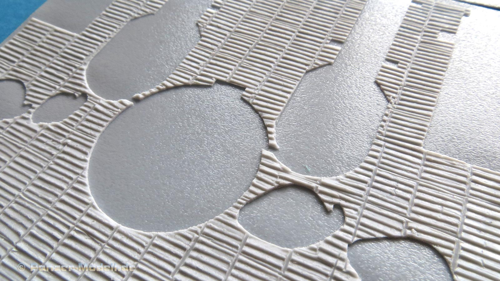 ATAK model ist unter den Modellbauern bereits als Spezialist für Zimmerit Beschichtungen bekannt, dass speziell auf Modelle verschiedener Hersteller zugeschnitten ist. Bisher hauptsächlich für Zimmeritsets für 1:35 Modelle bekannt, macht ATAK nun auch Sets für den stetig wachsenden Markt der 1:16 ModelleIn einer wiederverschließbaren Klarsichtplastiktüte finden 2 Resingussteile und 5 große, hauchdünne Resinblätter mit darin eingebetteten Flächen mit Zimmerit für die einzelnen Oberflächen des Bausatzes, die Zimmerit tragen müssen. Ein Pappdeckel schützt das dünne Resin vor Beschädigungen. Die zusätzlichen Resinteile stellen die Kanonenblende und die Abdeckung der Bug MB Blende dar und sind scharf detailliert und blasenfrei. Sofern Angüsse vorhanden sind, sind sie geringgehalten, so dass Entfernen und Versäubern problemlos durchzuführen sind.Für alle mit Zimmerit versehenen Flächen an Wanne und Aufbau sind Teile vorhanden. Die Struktur des Zimmerits ist dem typischen MAN Zimmeritmusters nachempfunden und macht einen hevorragenden Eindruck.