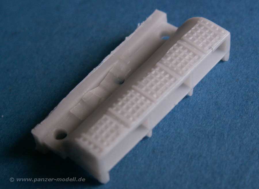 Die komplexen Resinteile mit Zimmerit umfassen dann die Luken der Glacisplatte und des Motordecks, Die seitlichen Lufteinlässe, Panzerung der Fahrerfrontplatte, das obere Wannenheck und als besonderes Schmanckerl einen Stempel, mit dem man das Waffelmuster im Notfall an besonderen Stellen selber in Spachtel einprägen kann.