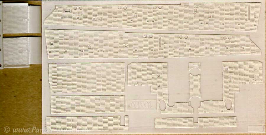 An Resinteilen enthalten sind die beiden Frontkettenbleche und als Zimmeritsheets die Oberwannenseiten, das Wannenheck, die Glacisplatte und Wannenfront.