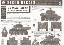 Für Fans aliierter Fahrzeuge gibt es unter der Nummer 35071 einen Decalbogen für dem US M5A1 Stuart in Europe and the Pacific, z.B. für den M5A1, der kürzlich von AFV-Club unter der Nummer 35105 herausgebracht wurde.
