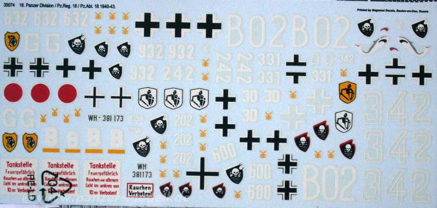 Unter der Nummer 35074 gibt es einen Decalbogen für die Panzer der 18.Panzerdivision.