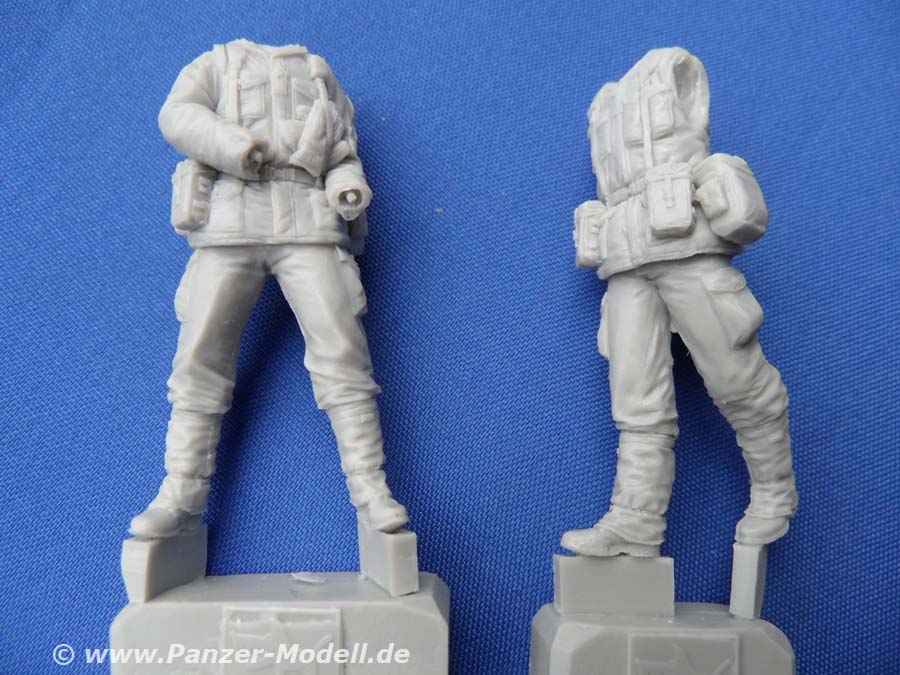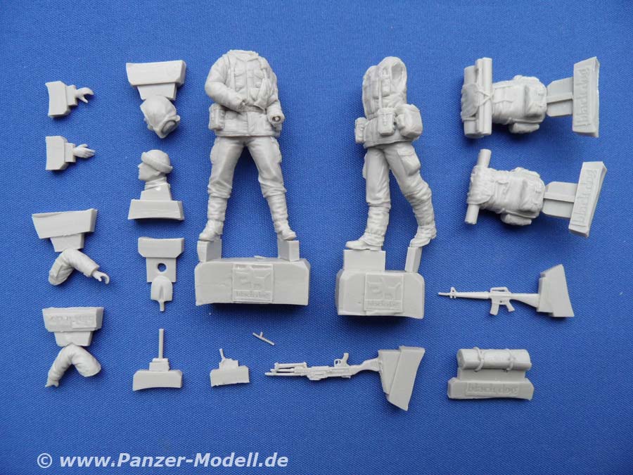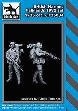 1:35 Figurensatz "British Marines Falklands 1982 set" Von Black Dog erreichte uns ein ganz brandneuer Satz. Inhalt zwei Figuren aus Resin in gewohnter Qualität. Es handelt sich um zwei Figuren der Royal Marines auf den Falklands 1982. Perfekt für ein Diorama zum großen Marsch auf Port Stanley! Die Figuren sind gut warm eingepackt und mit einem FN-MAG und einem AR-15 bewaffnet. Dazu mit Rücksäcken versehen, welche vollgestopft sind, u. A. mit Raketenwerfern. Genau die typischen Royal Marines wie sie 1982 im südatlantischen Klima unterwegs waren. Der Bau der Urmodelle und der Guss der Figuren sind sehr gut und wissen auf ganzer Linie zu überzeugen! Endlich mal ein paar neue Royal Marines! Da muss man sich ja wirklich mal überlegen ob man diesen fast vergessenen Krieg nicht modellbautechnisch wieder aufleben lassen will! Weitere Figuren gibt es ja z. B. von Accurate Armour. |