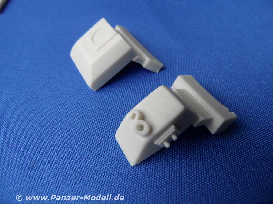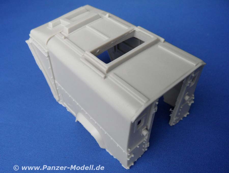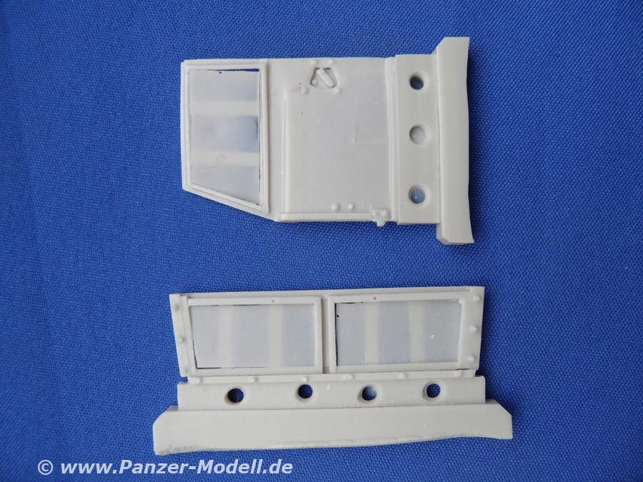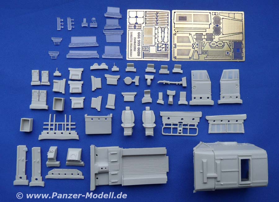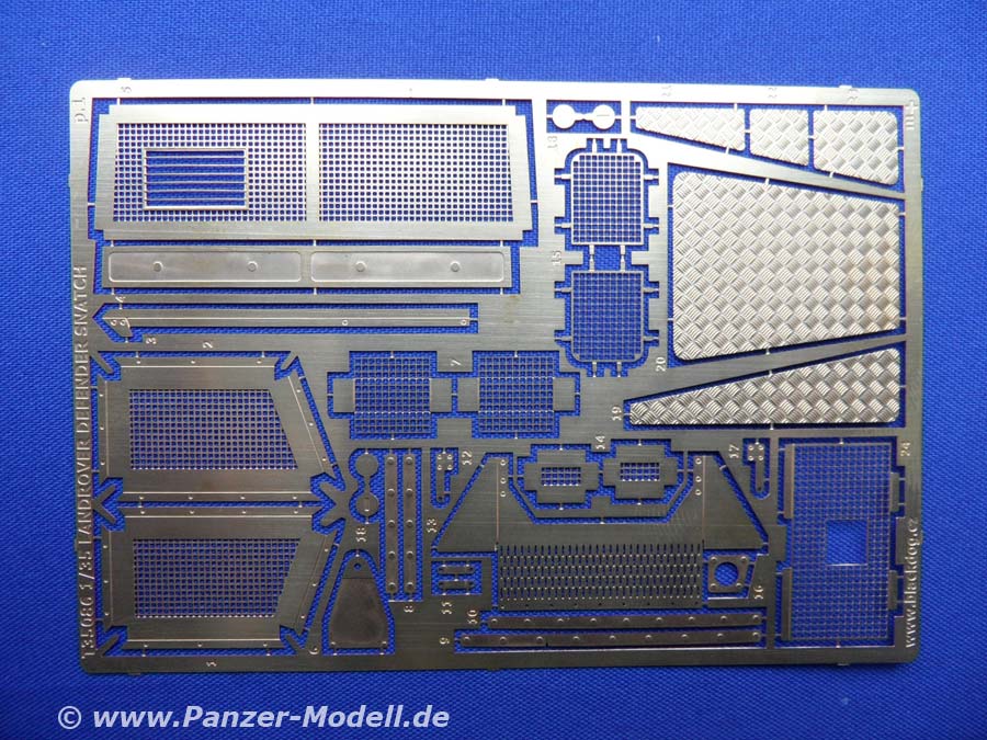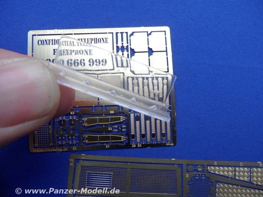 1:35 Resin- und Ätzteil-Umbausatz "Land Rover Defender CAV "Snatch" conversion set" Nachdem BlackDog immer wieder mit tollen Figurensätzen und reichlich Gerödel für HobbyBoss Land Rover die Modellbauer erfreute gibt es nun etwas ganz besonders Feines! Der CAV oder auch Snatch wurde für den Einsatz in Ulster (Nordirland) entwickelt. Eingesetzt wurde er aber fast überall! Das reichte über Jugoslawien, den Irak bis nach Afghanistan. Inzwischen sind diese aber gegen etwas widerstandsfähigerere Fahrzeuge ersetzt worden. Gerade der "Nordirland-Modellbauer" wird sich vor Freude fast nass machen (also ich! ;-))! Nicht nur dass man sich nun nicht mehr über Airfix (1:48? Wer nur in GB verkaufen will, bitte!) ärgern muss, sondern man bekommt auch gleich die Möglichkeit die Ulster-Version zu bauen! Der Umbausatz ist schon fast ein Komplettbausatz. Vom HobbyBoss Landy bleibt nicht viel mehr übrig als das Fahrgestell und die Front. Insgesamt eine stattliche Anzahl guter Resinteile, die durch zwei Ätzplatinen ergänzt werden! Auch sind die klaren Resinteile für Fenster und die Dachluke dabei. Und die Teile sind wirklich klar! . Die Gitter über den Fenstern sind sicher eine Herausforderung für den Modellbauer, aber mit einem scharfen Messer ein paar Mal durch den Falz gefahren sollten sie sich gut biegen lassen! Ansonsten befassen sich die hervorragenden Ätzteile mit Details und dem kompletten Gurtzeug, sowie den Diamond-plates auf der Motorhaube! Für den Einsatz in Ulster liegt eine Schablone für die markante Beschriftung bei! Sehr gut! Nur sollte man hier, wie auch in Bosnien, die Klimaanlage ausbauen (das H-förmige Teil auf dem Dach zwischen Luke und Scheinwerfen entfernen!). Als Basis sollte man den RSOV Bausatz verwenden, da dieser die am ehesten zutreffenden Reifen hat und ja eh nur Fahrgestell und Front benötigt wird! Mein persönlicher Favorit dies Jahr! Es sei den BlackDog schiebt noch einen RUC Tangi hinterher!?