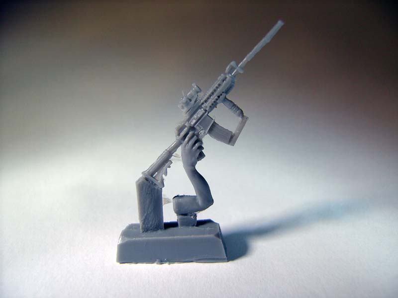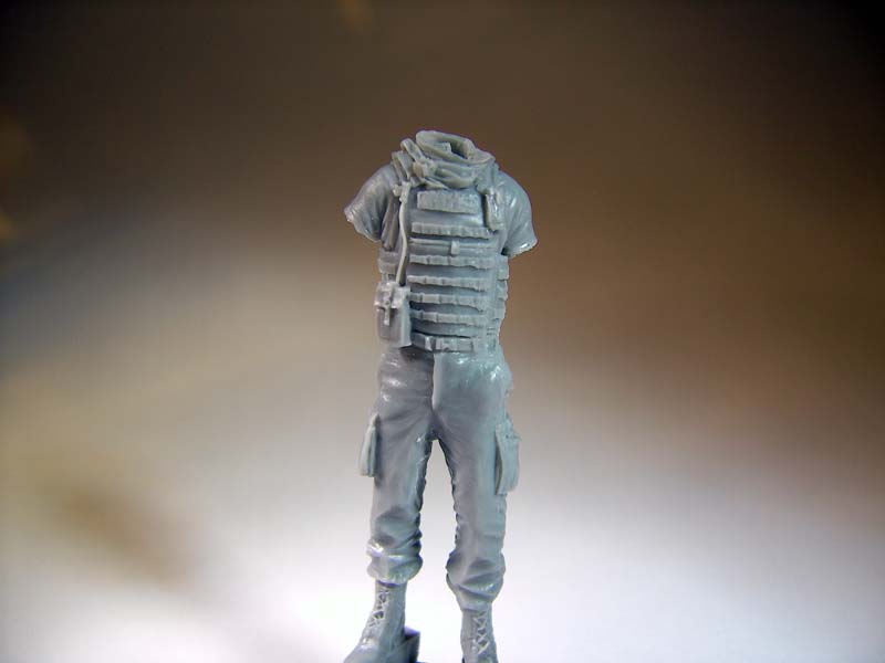 Verpackt in einem stabilen Karton, vor Bruch durch ein paar Schaumstoff-Flocken geschützt, bekommt man eine, aus insgesamt neun Bauteilen bestehende, Figur eines Angehörigen der U.S. Special Forces wie sie aktuell in den Krisengebieten im mittleren Osten im Einsatz sind. Die Besonderheiten mit denen sich die Angehörigen dieser Spezialeinheit hervorheben, wie zum Beispiel die teilweise im Einsatz getragene Zivilkleidung, gepaart mit militärischer Ausrüstung oder der, für einen amerikanischen Soldaten, so ungewöhnliche Vollbart sind von Black Dog hervorragend umgesetzt worden. Die Gussqualität dieser Figur kann nur als sehr gut bezeichnet werden und ist absolut vergleichbar mit der Qualität von Alpine Miniatures oder Bravo-6. Der Oberkörper und die Beine bestehen aus einem Teil mit relativ kleinen Angüssen unter den Stiefeln. Viele Details, wie die gefüllten und zum Teil offenen Hosentaschen, Faltenwurf der Kleidung, das Halstuch und die Schlaufen der Schutzweste sind meisterhaft modelliert und tragen ganz erheblich zur lebensechten und sehr natürlichen Wirkung dieser Figur bei. In der rechten Hand hält die Figur das Sturmgewehr, der Arm und die rechte Hand sind bereits an das Griffstück angegossen und sichern so den perfekten Sitz der Waffe. Der Oberarm wird dann unterhalb des Ärmels vom T-Shirt verklebt. Die linke Hand steckt ganz locker in der Hosentasche. Eine kleine Aussparung im Bereich der Hose ist hierzu ebenfalls vorhanden. Der Kopf liegt separat bei. Der Vollbart, die Staubschutzbrille sowie der Gesichtsausdruck sind wahrlich toll getroffen. Mit fünf kleinen Ausrüstungstaschen wird der `Special Forces Mann` dann komplettiert. Fazit: Tolle Qualität zu einem tollen Preis. Denn die Figur ist zu einem Preis von nur 12,- EUR erhältlich.Wir bedanken uns bei Sylvia Hübner von TS MILITARY MODELS für das Ansichtsexemplar. Produkte von Black Dog sind in Deutschland erhältlich bei: |
